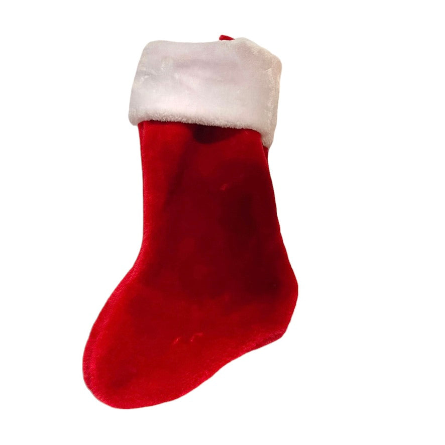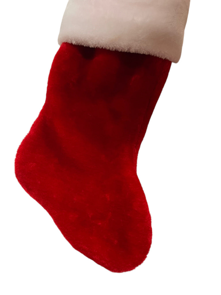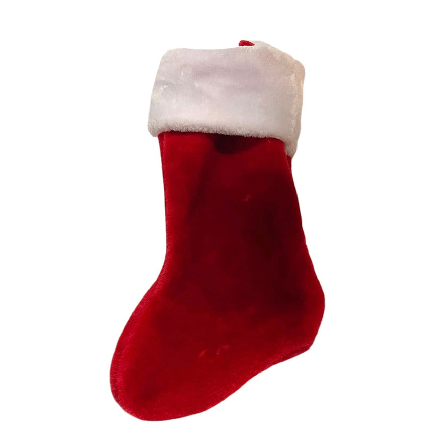 Traditional Plush Red Christmas Stocking with White Plush Cuff. 18" Long with a 10"Foot. Good Preloved Condition, perfect for your fireplace!
