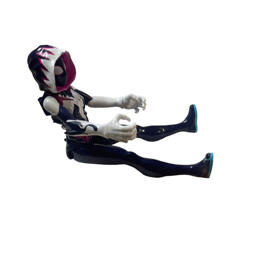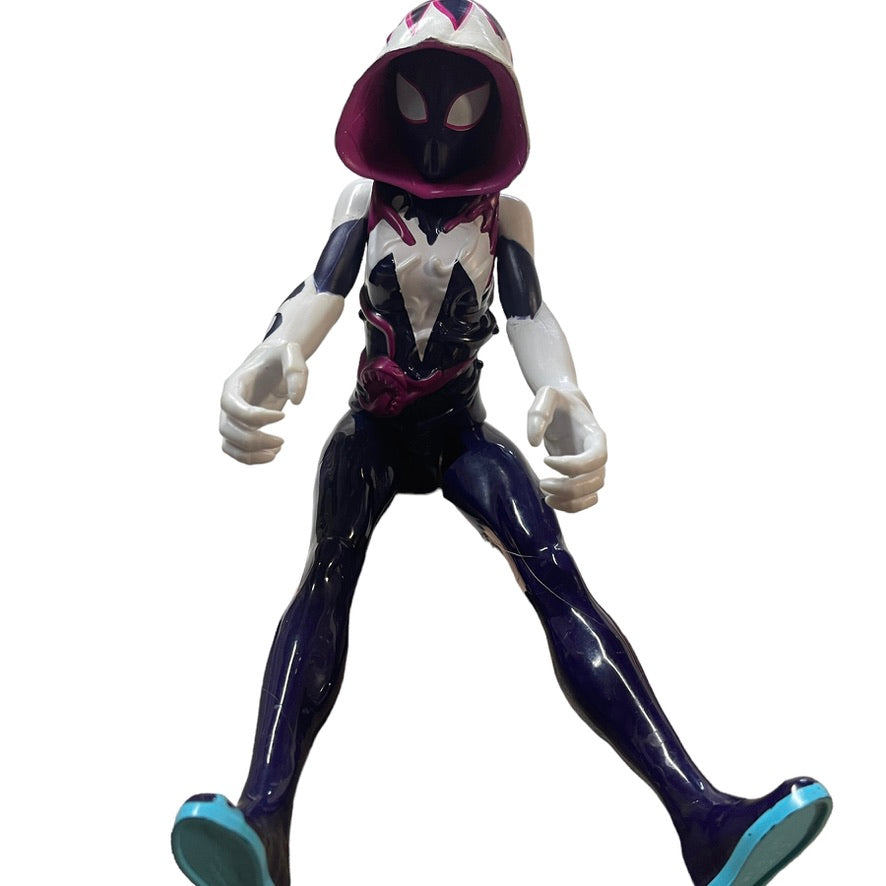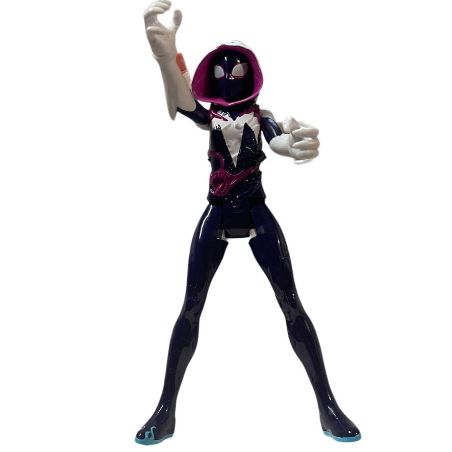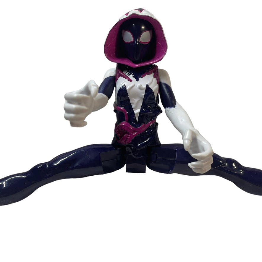 Marvel Ghost Spider, 12" posable Maximum Venom Action Figure by Hasbro in purple, white and pink with turquoise shoes. Very good preowned condition.