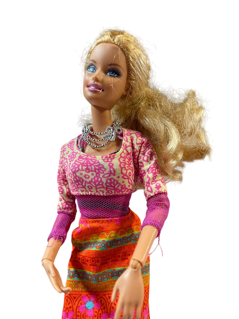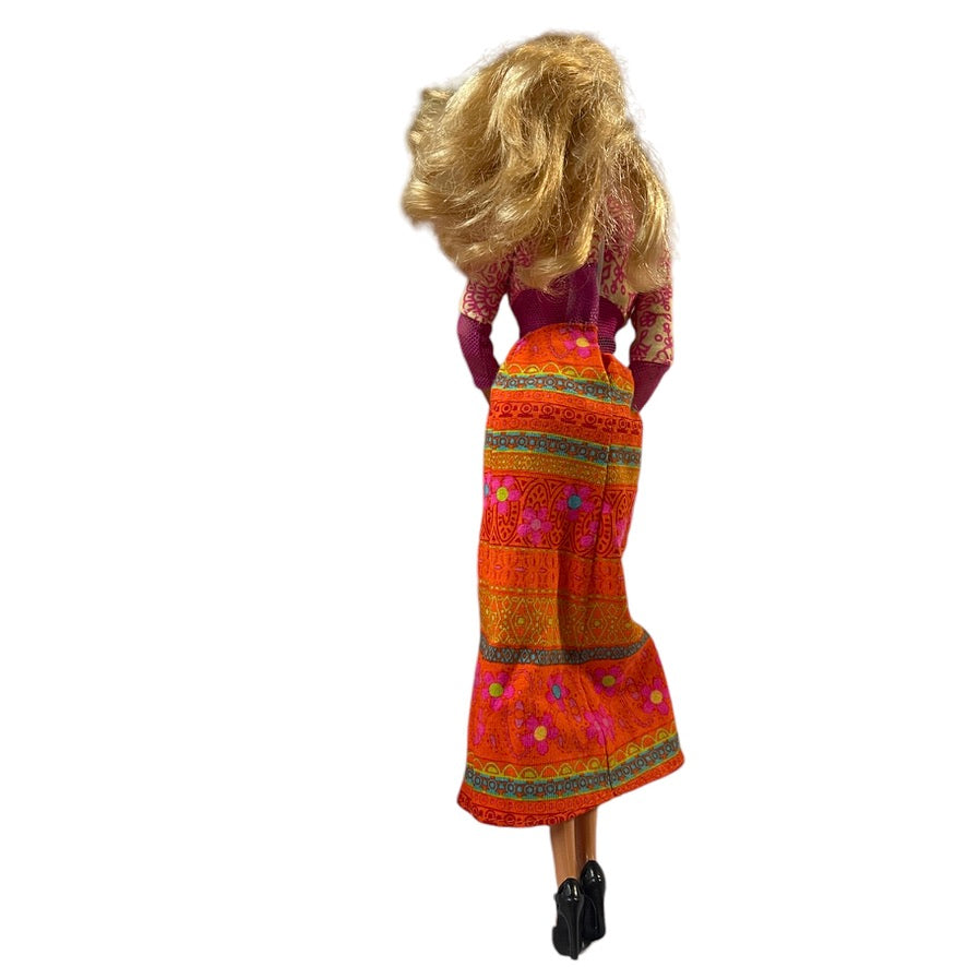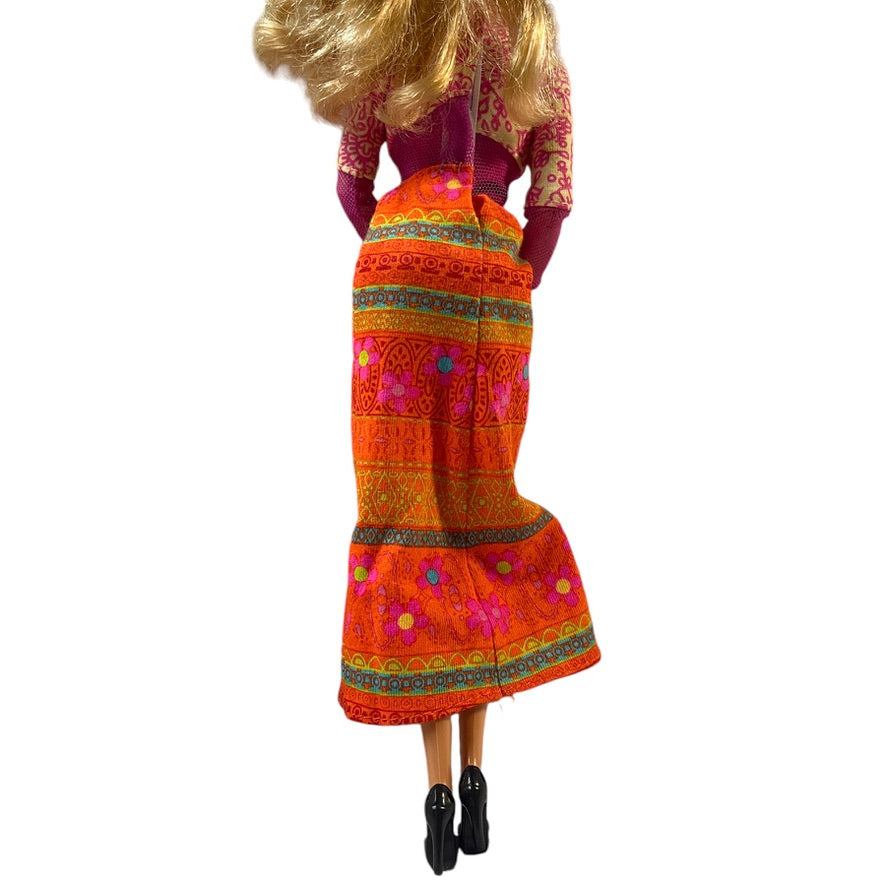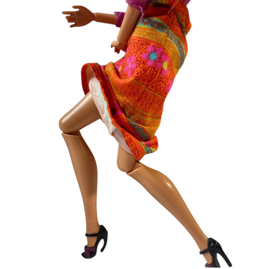 Mattel Articulated Blond 2009 Doll & 2000 Flower Power Pink & Orange Hippy Dress & Accessories