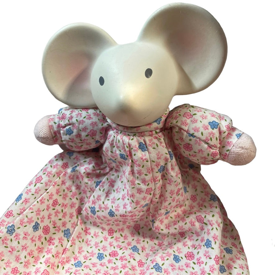 Meiya & Alvin Plush Rubber Head Mouse Lovey Security Blanket 11" Floral Dress. This sweet mouse is in excellent preowned condition. Great teether.