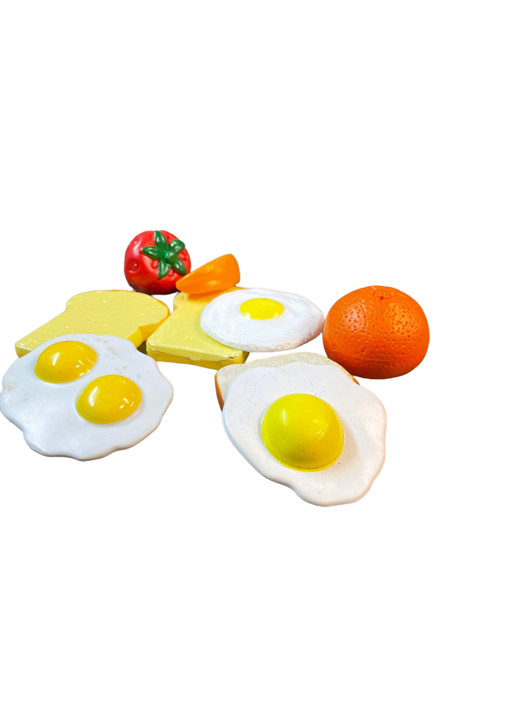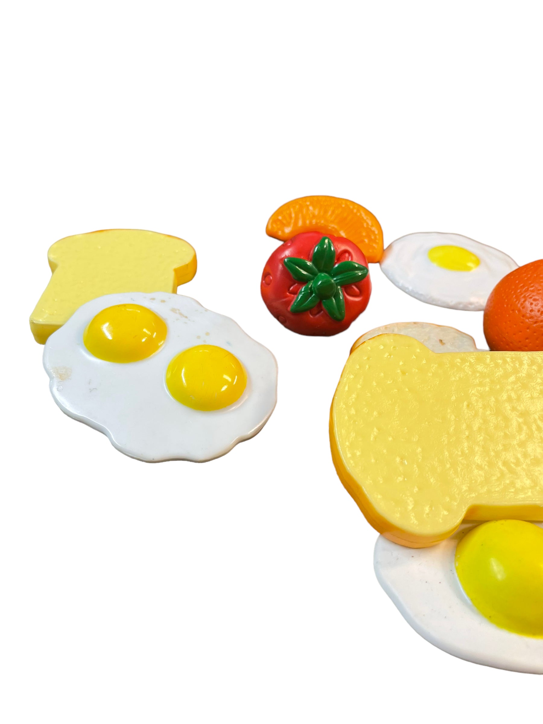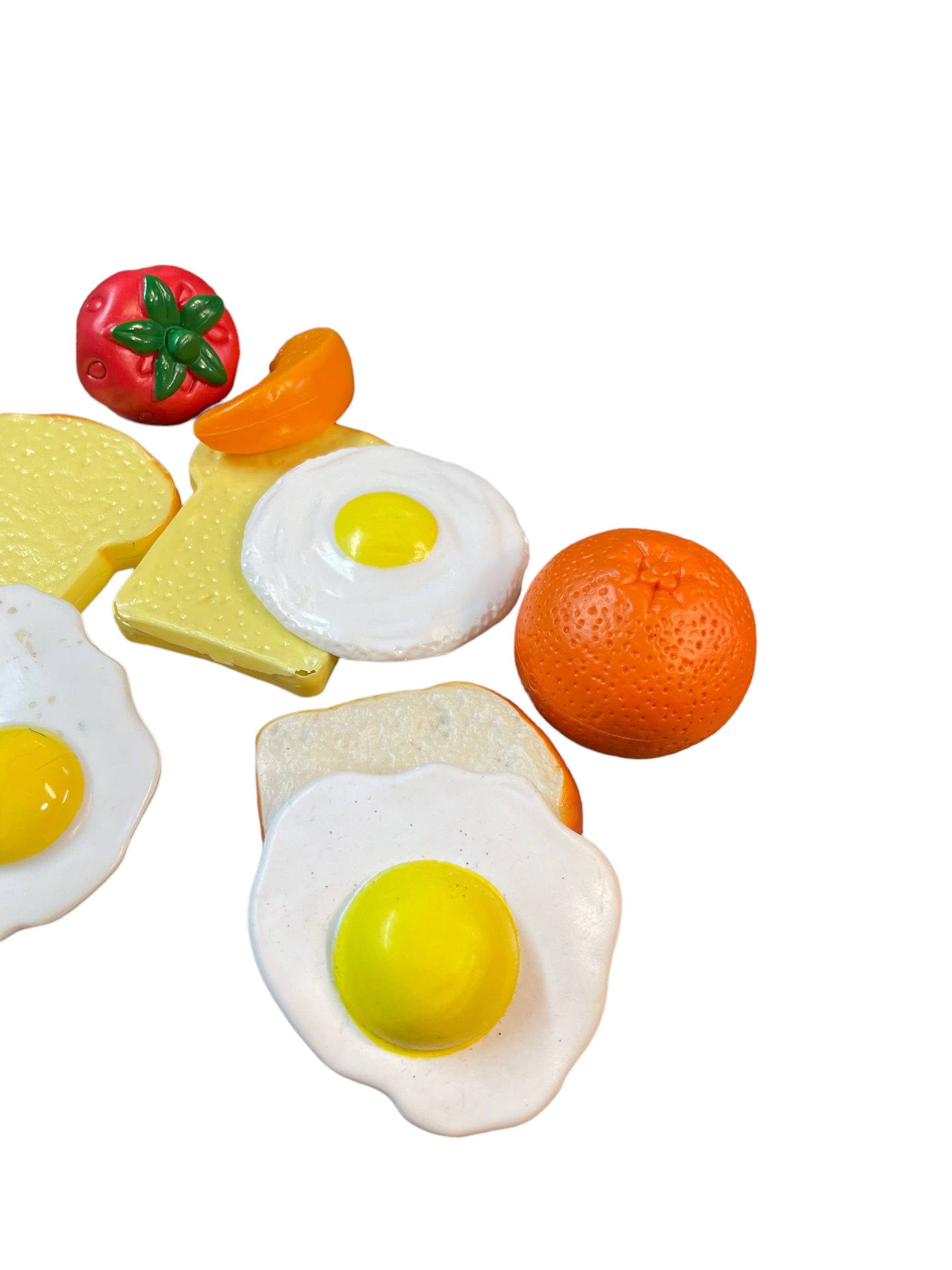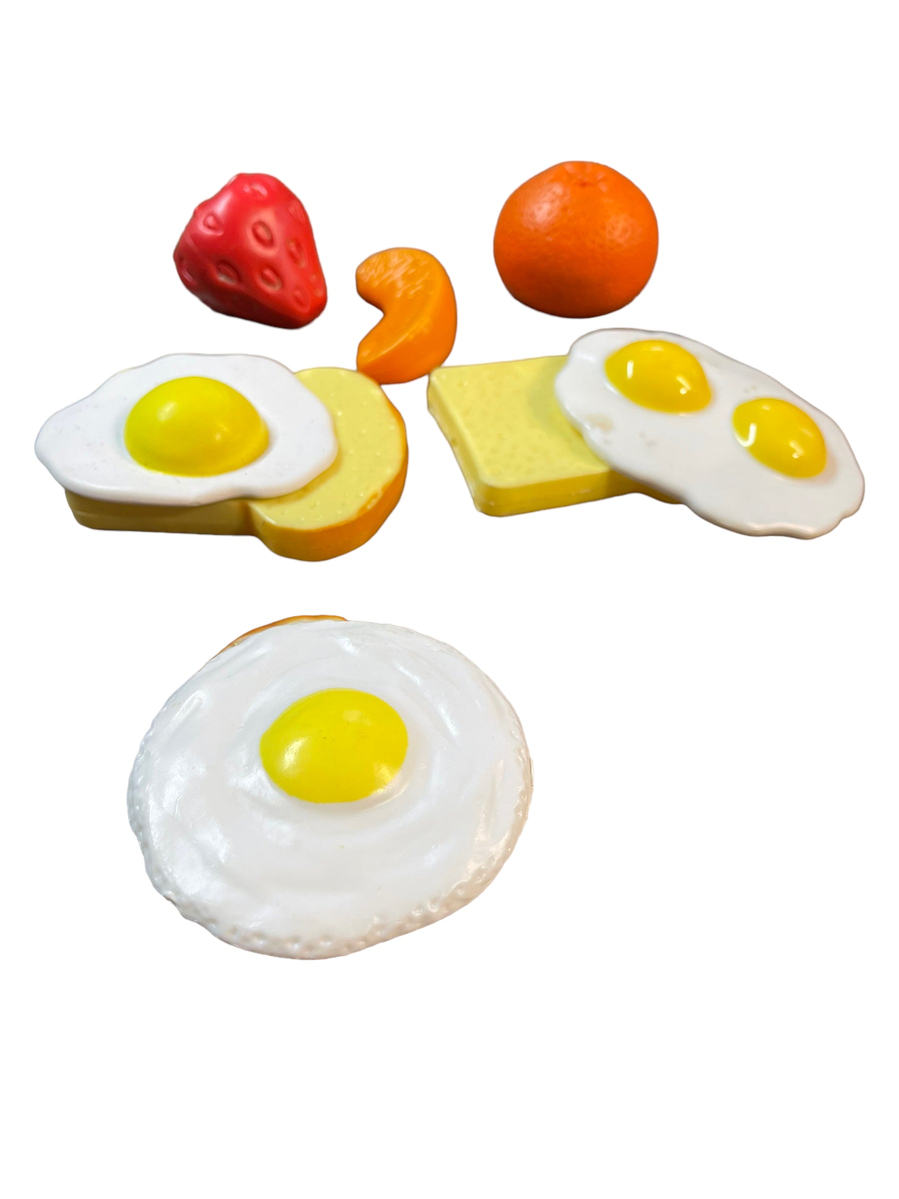 Mixed Lot of 8 Play Breakfast Foods, in Good Preowned Condition. Includes Fried Eggs, Bread and Fruit. Great for hours of imaginative play!