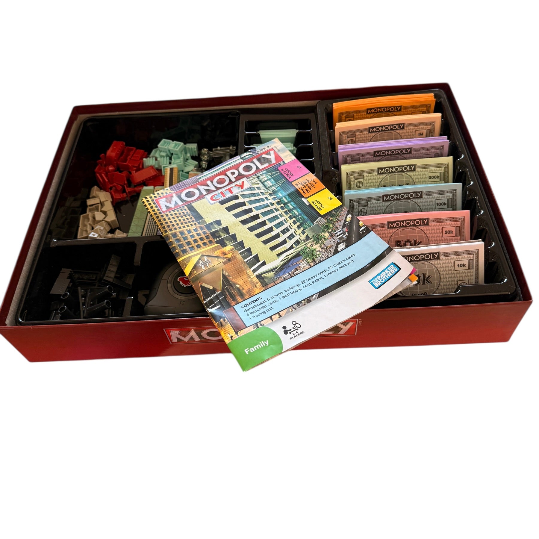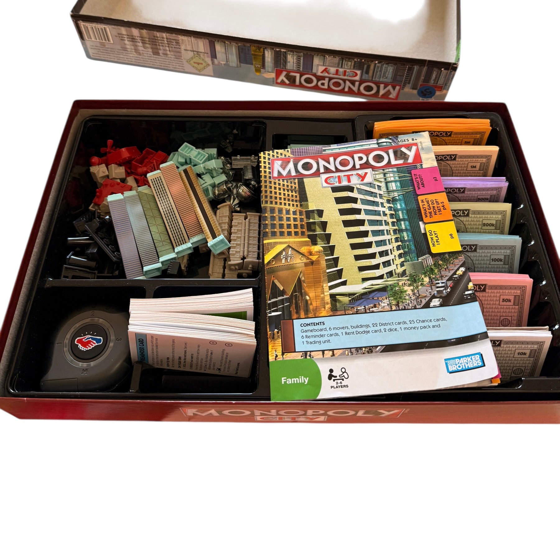 Monopoly City, with 80 3-D Buildings! Play a familiar game in a new way. This preowned 2009 Edition is complete and in very good condition.