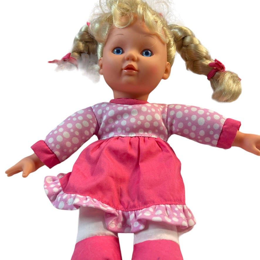My Sweet Baby 12" Doll Blue Eyes, Blond Braids, Cloth Body with Pink Dress/Shoes