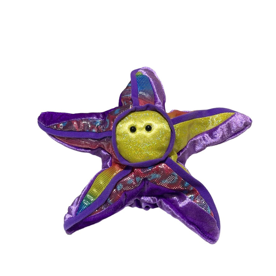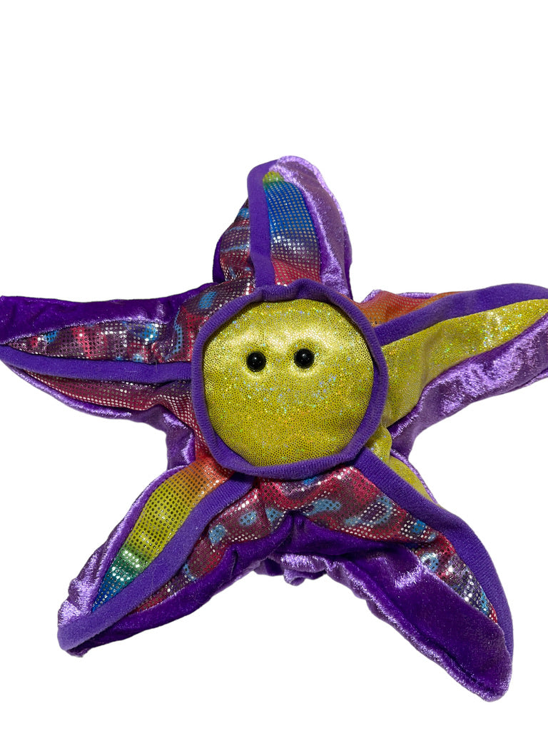 Iridescent Sparkly Orange Octopus is paired with a Bright Purple, Yellow & Multicoloured Iridescent 10" Starfish. These Amazing Hand Puppets are in excellent preowned condition. A Very Special Duo!