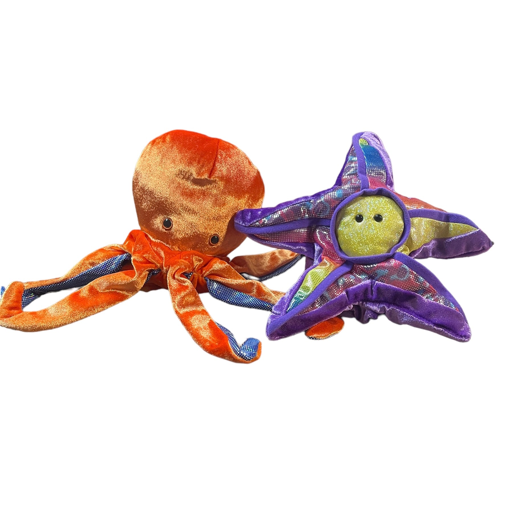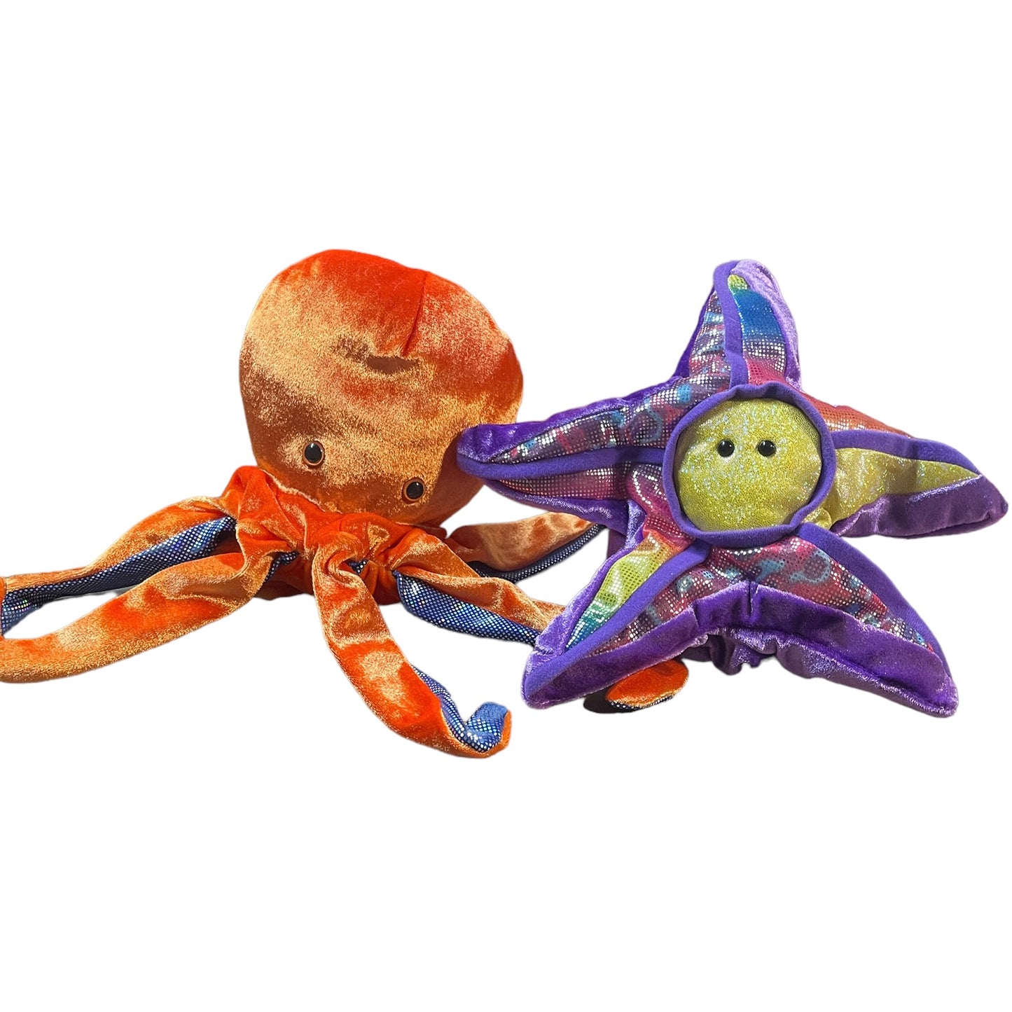 Octopus & Starfish Dream Hand Puppets 10"Sparkly S ea Creatures in EUC