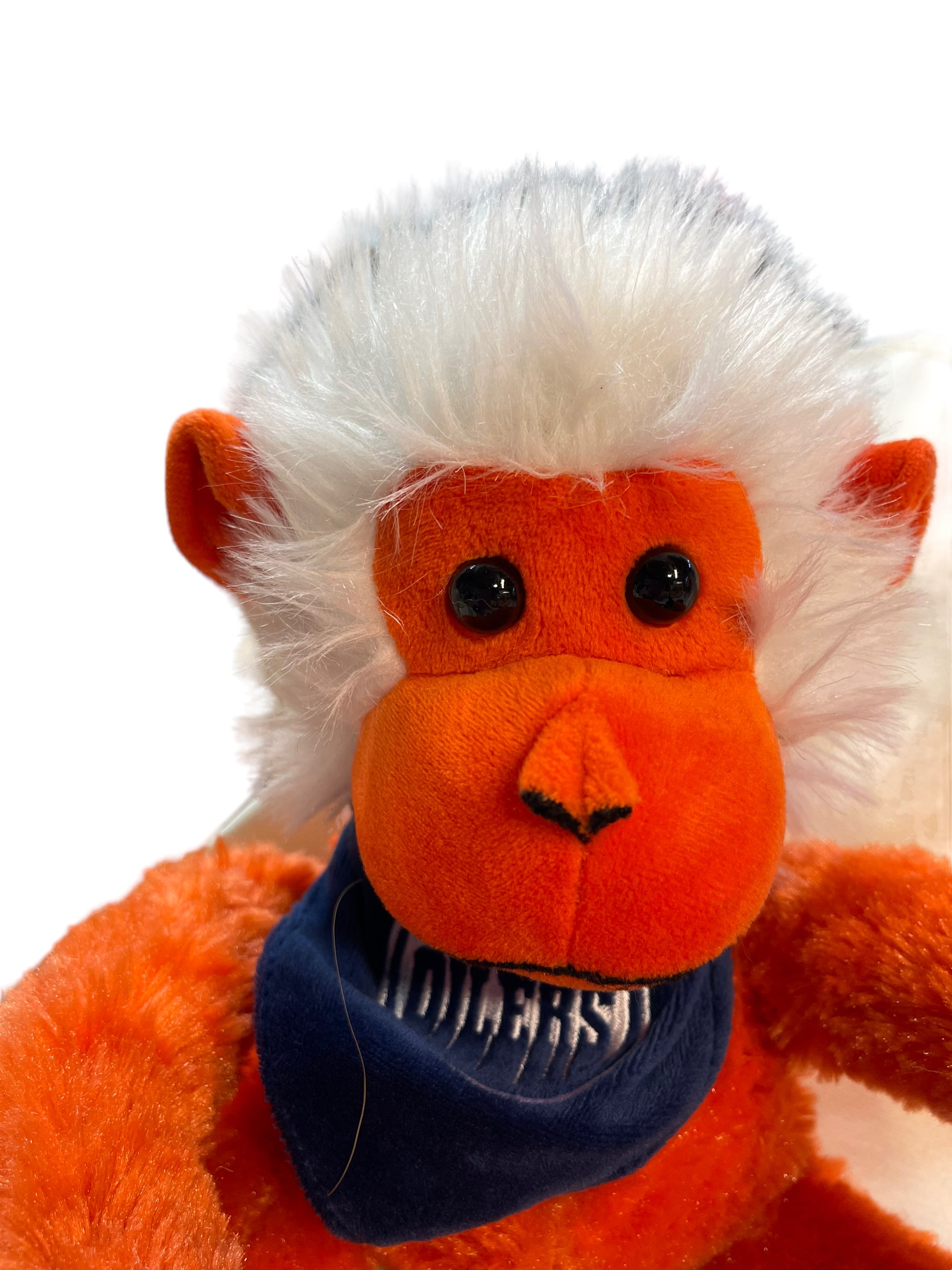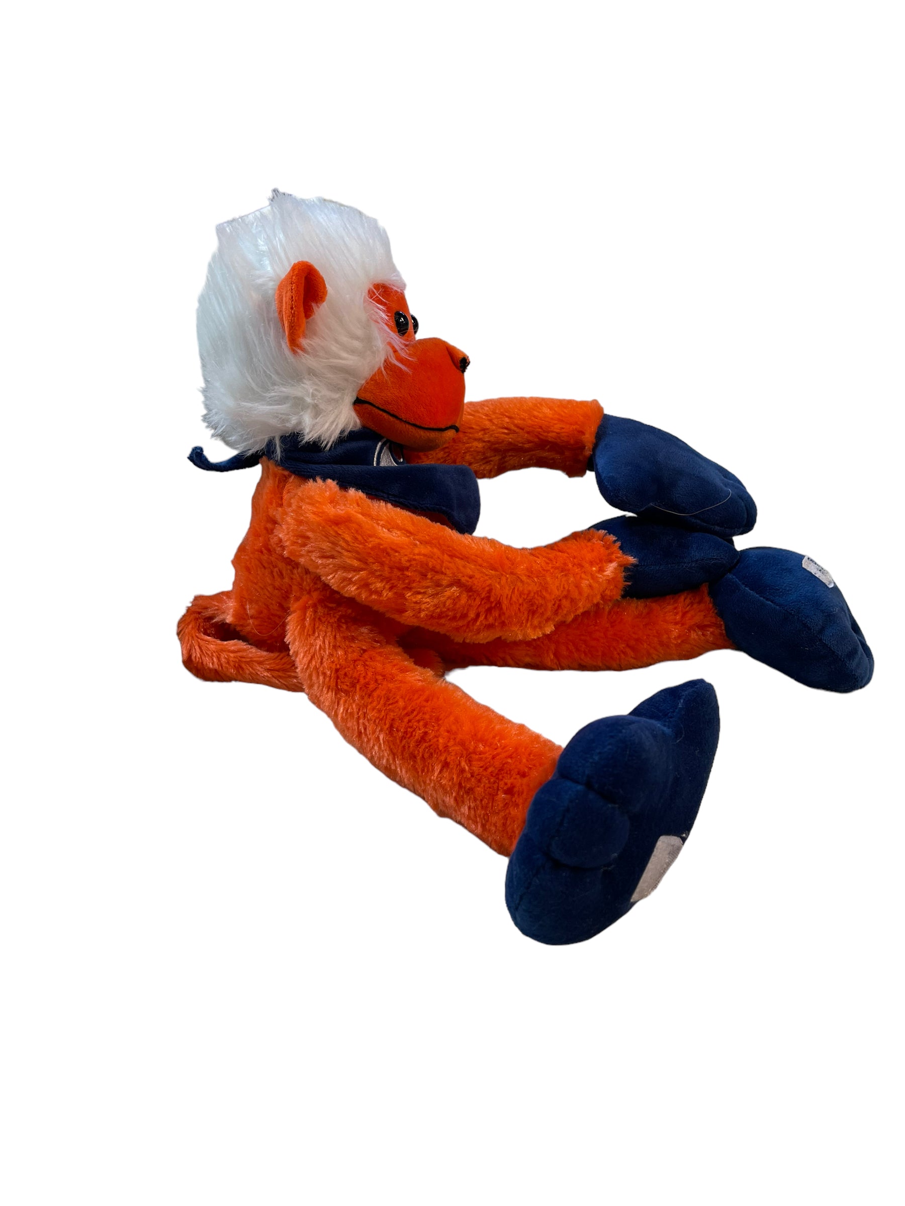 Oiler's Hanging Monkey 16" Orange & Blue with White Hair and Bandana, Velvet Accents