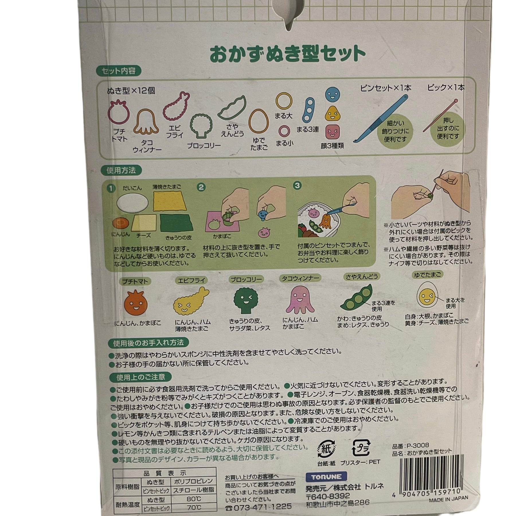 Preowned unopened Torune Bento Foods Cutter Set and two Daiso and Sushi Rice Molds in like new condition.