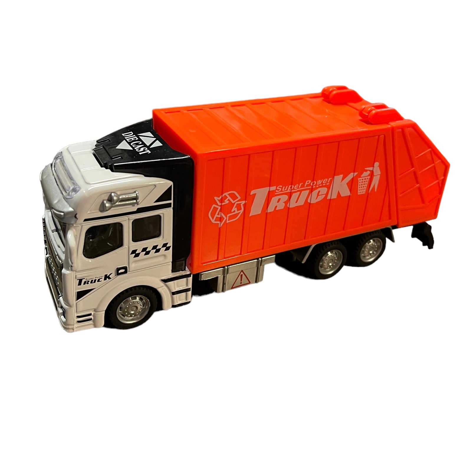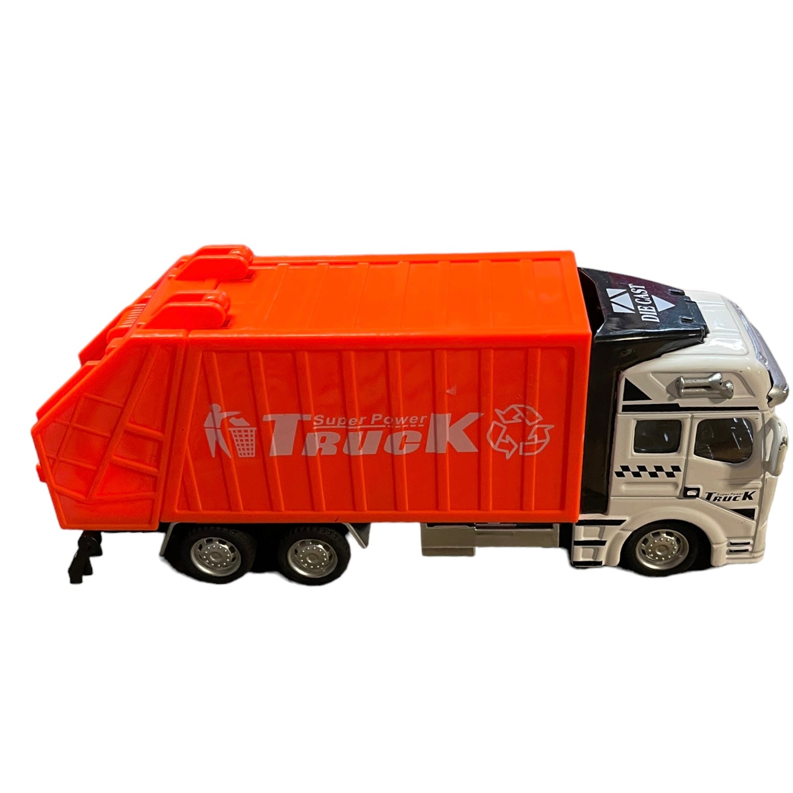 Die Cast Orange & White Super Power Garbage Truck in EUC. A great addition to your collection.