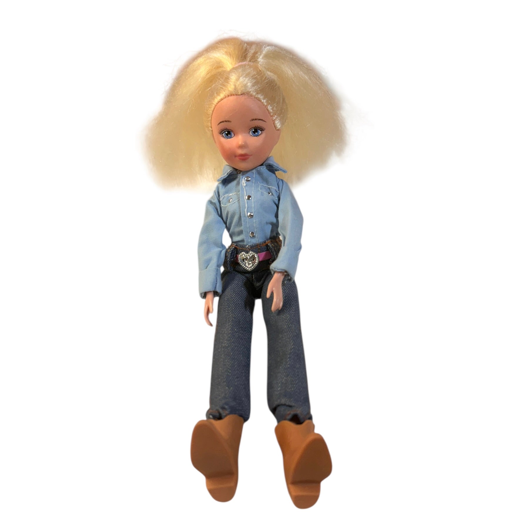 Paradise Kids 10" Blond Western Cowgirl Doll Denim Outfil, Cowboy Boots & Fancy Belt Buckle