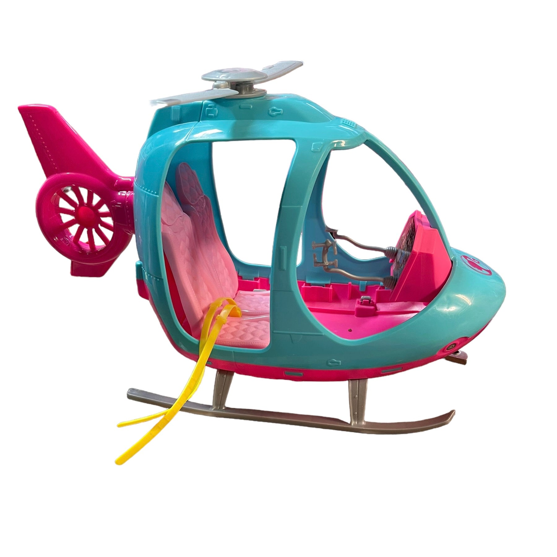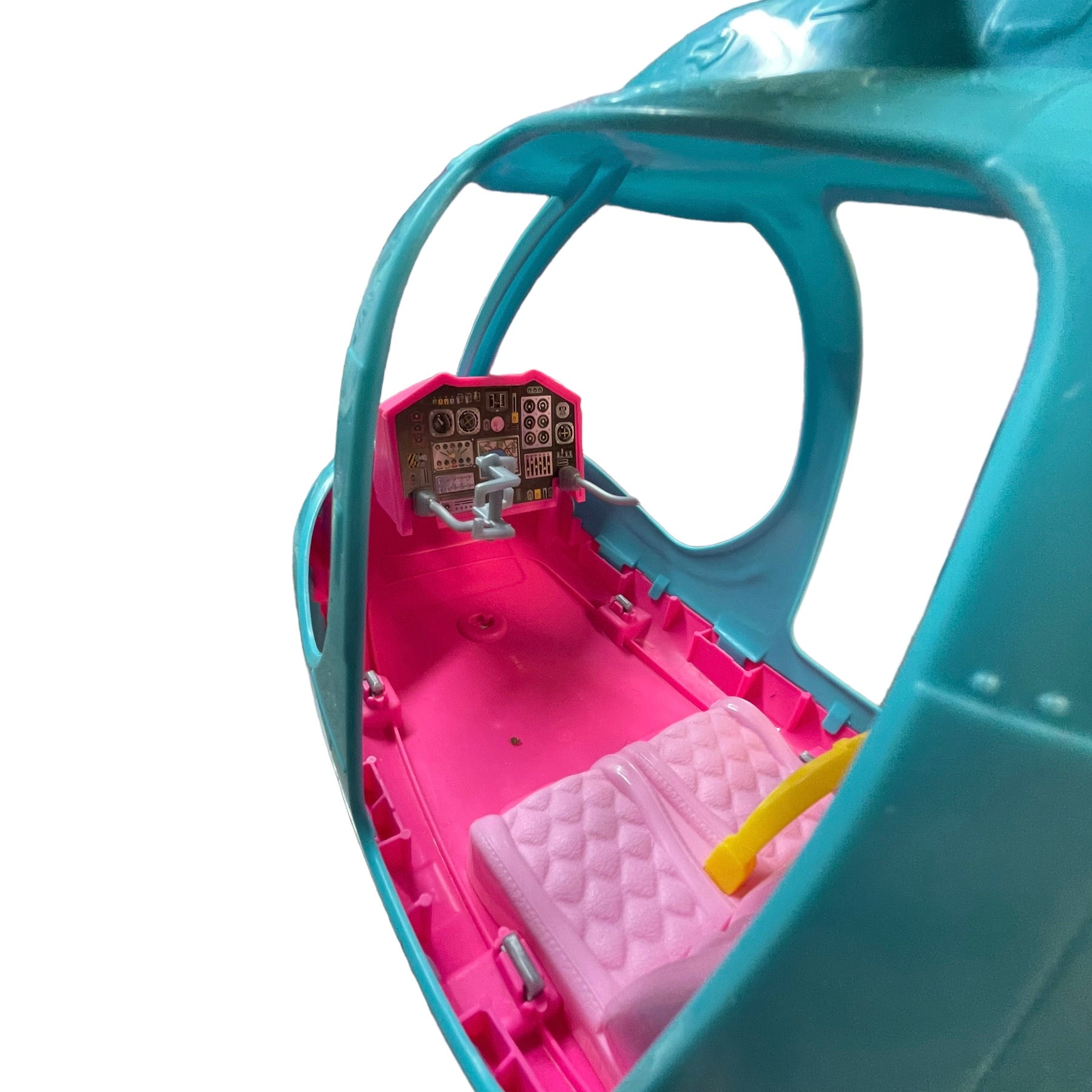 Barbie Helicopter in Great Preowned Condition. Blue with Hot Pink interior. Complete with seatbelt and spinning rotor blades.