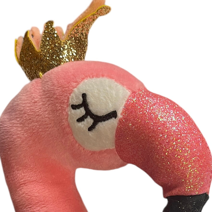 Pink Flamingo, Fluffy,Shiny and Very Sparkly!, Gold Crown, Embroidered Closed Eyes, Long Legs!