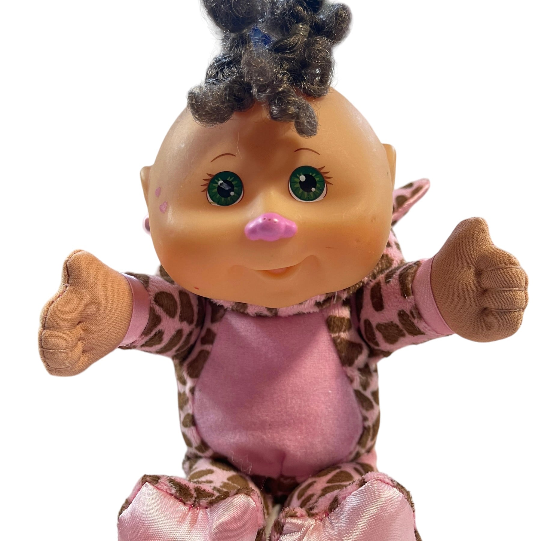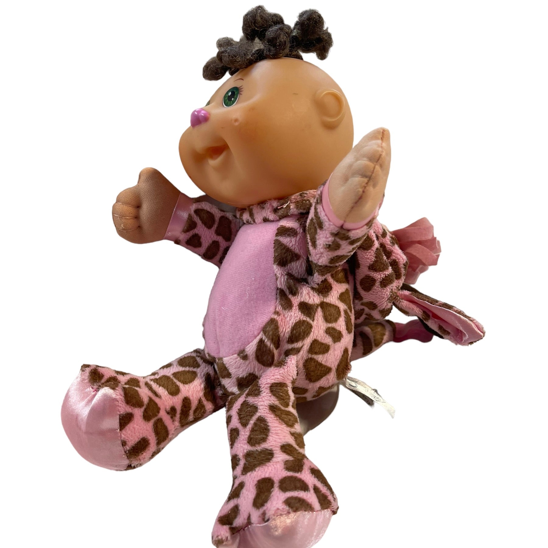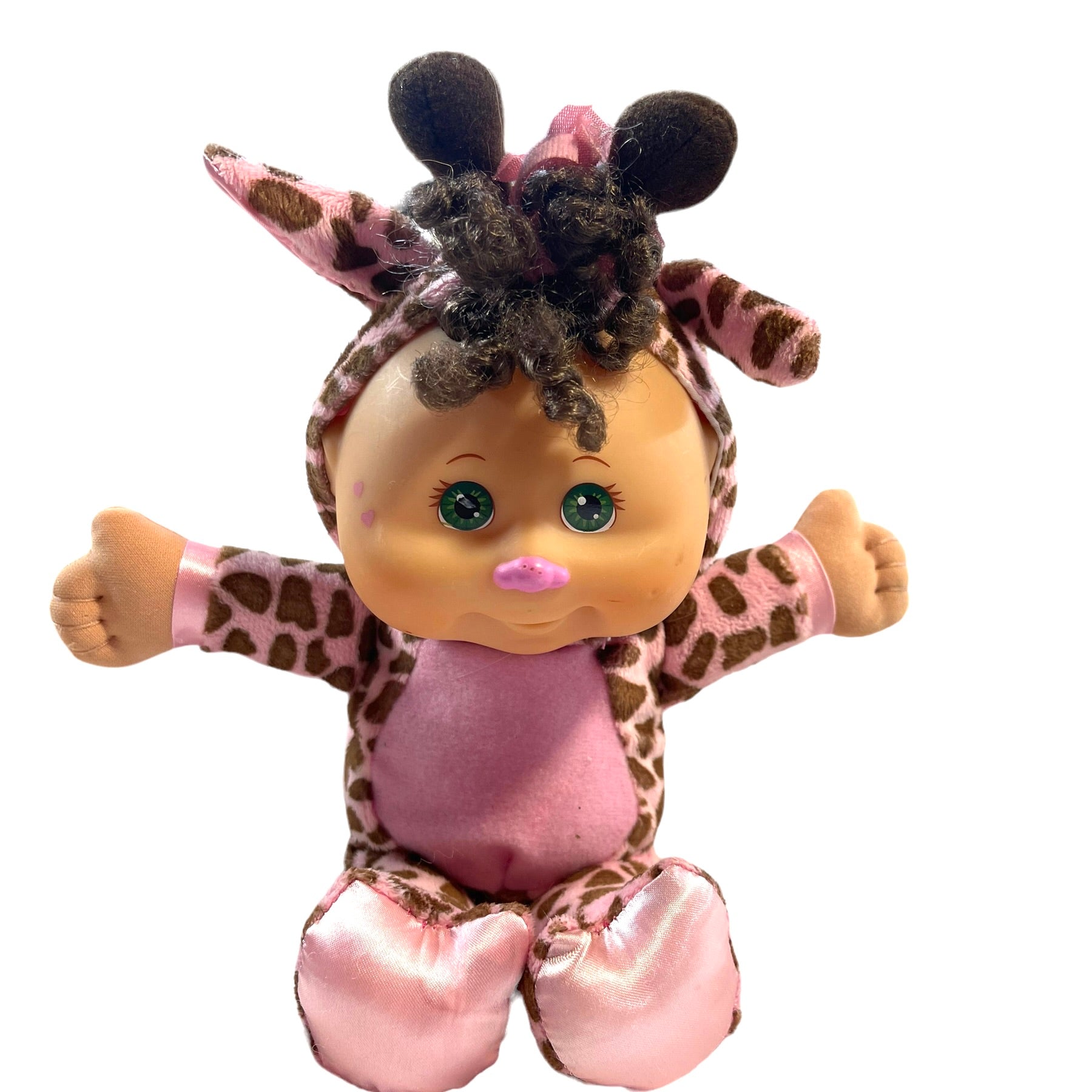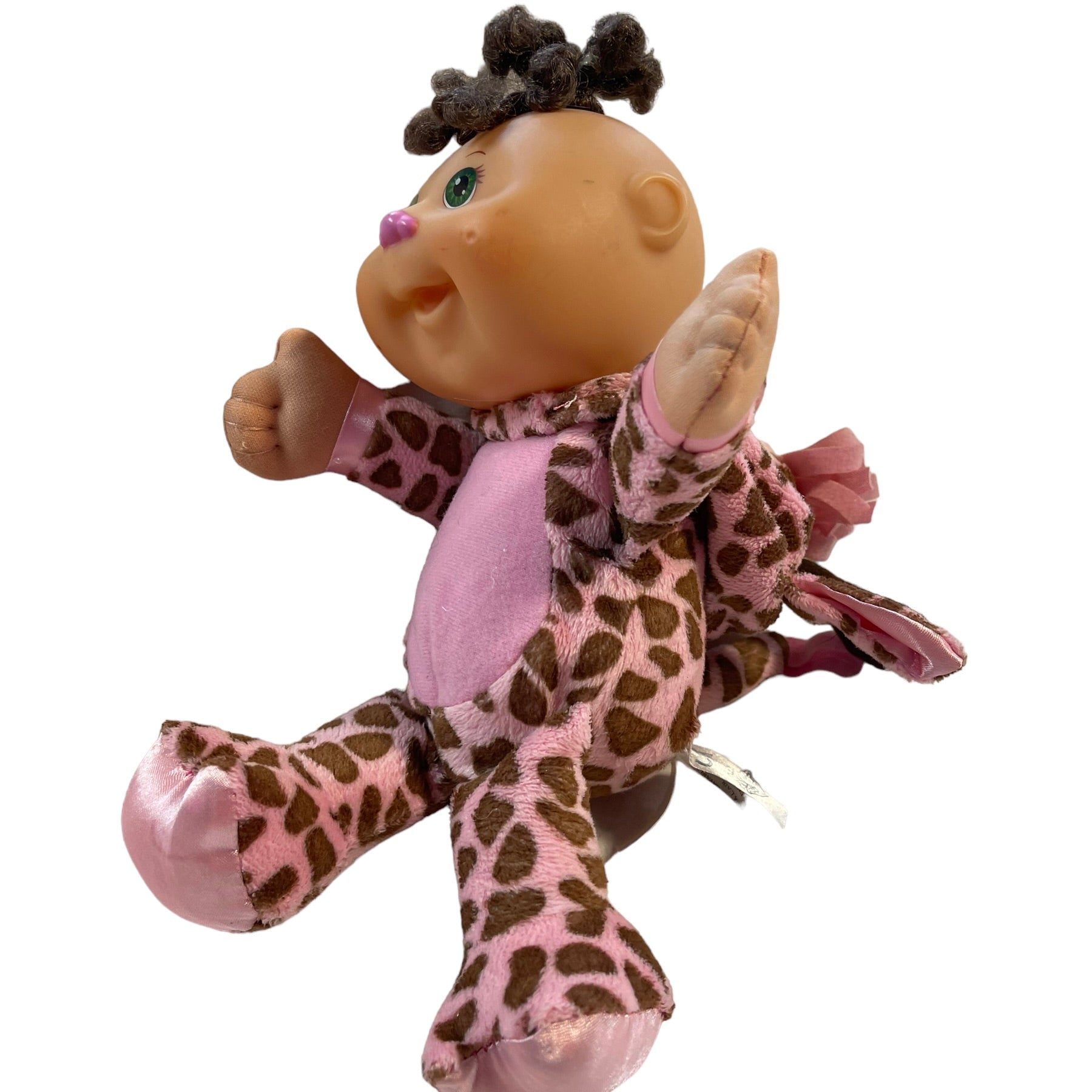 Cabbage Patch Kids Cuties Doll, Pink/Brown Giraffe 10" Green Eyes and Curly Dark Hair