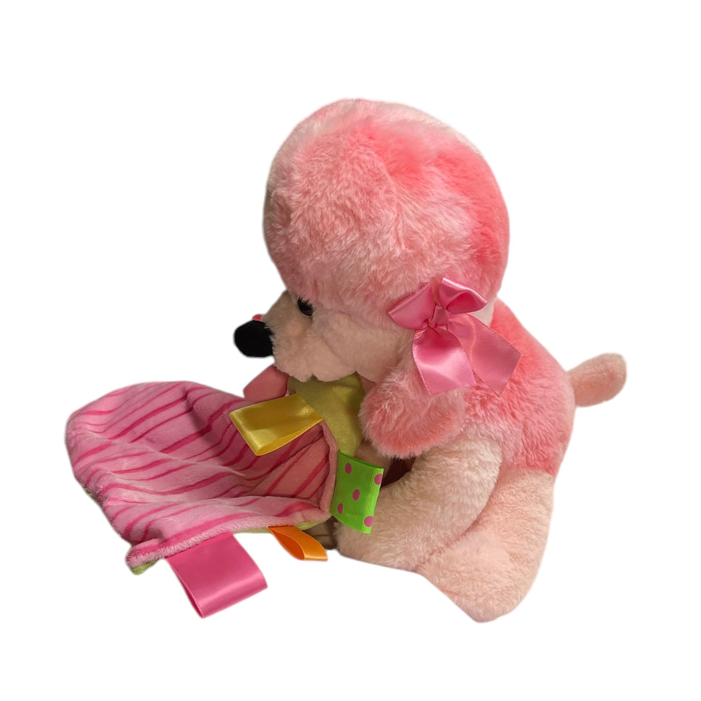 Pink Poodle Stuffed Toy Dog & Luxury Handmade Minky Ribbon Tag Lovey Security Blanket in EUC