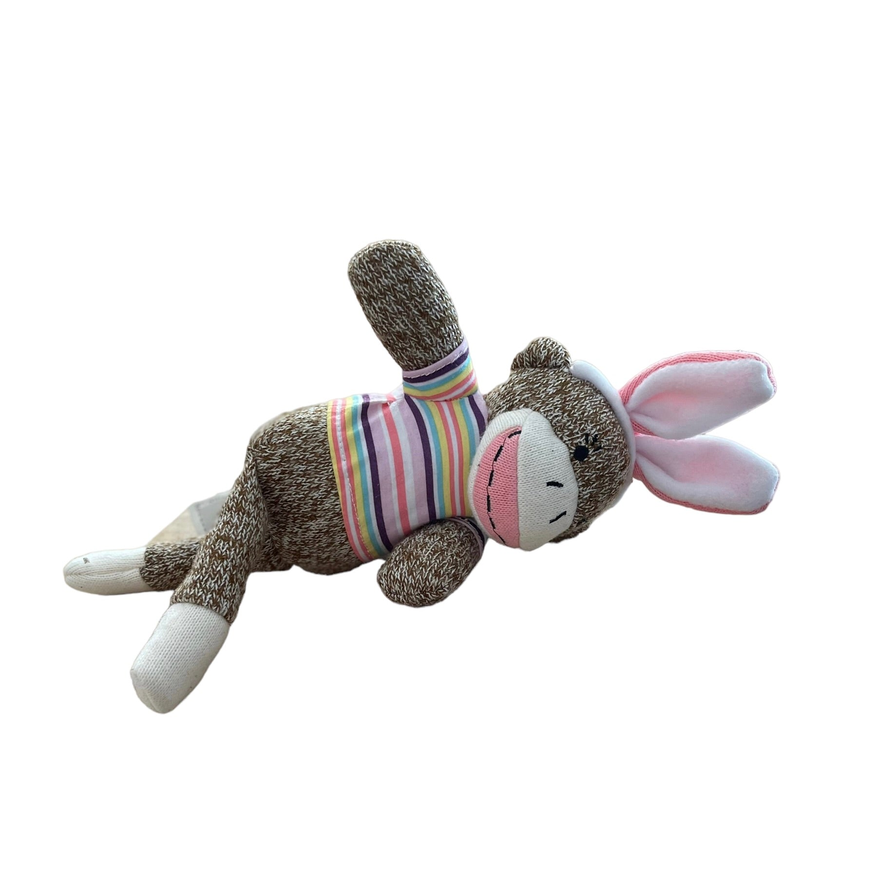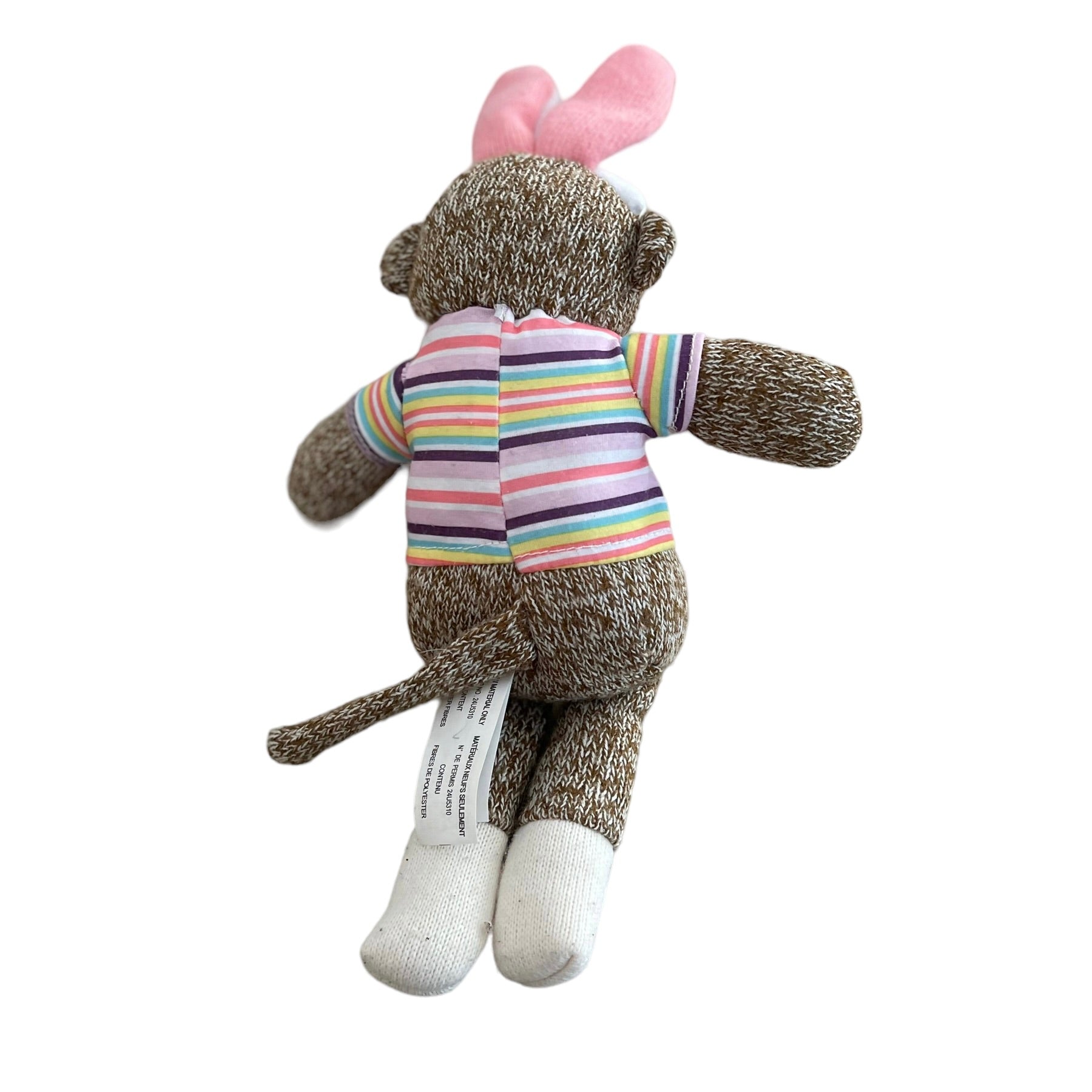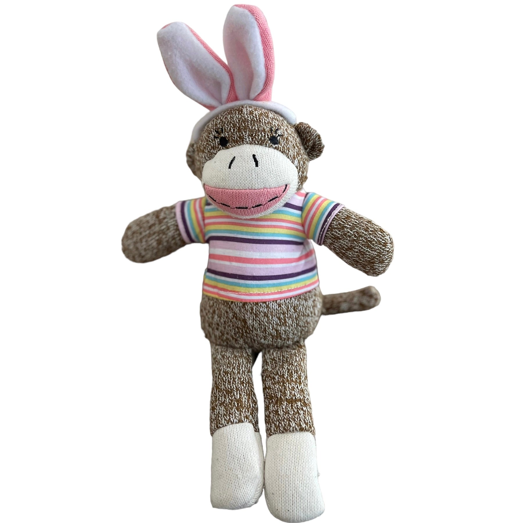 Pink Sock Monkey with Easter Bunny Ears & Embroidered Face. GUC