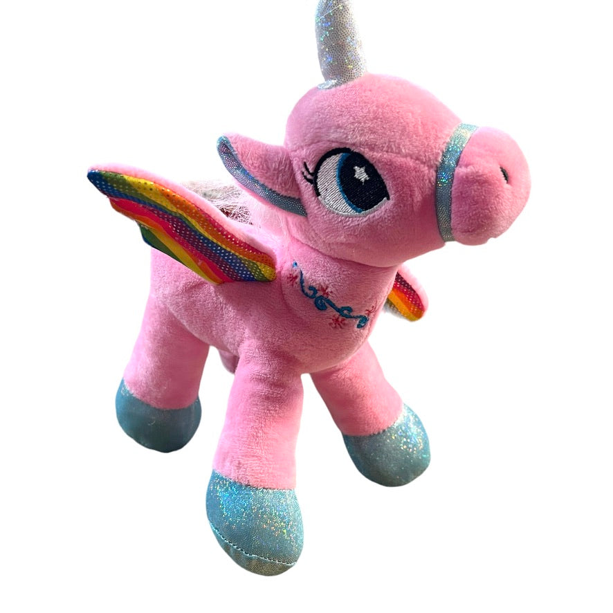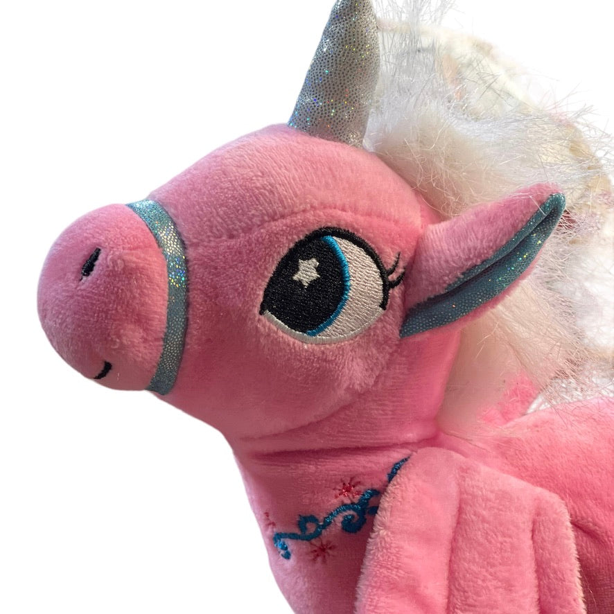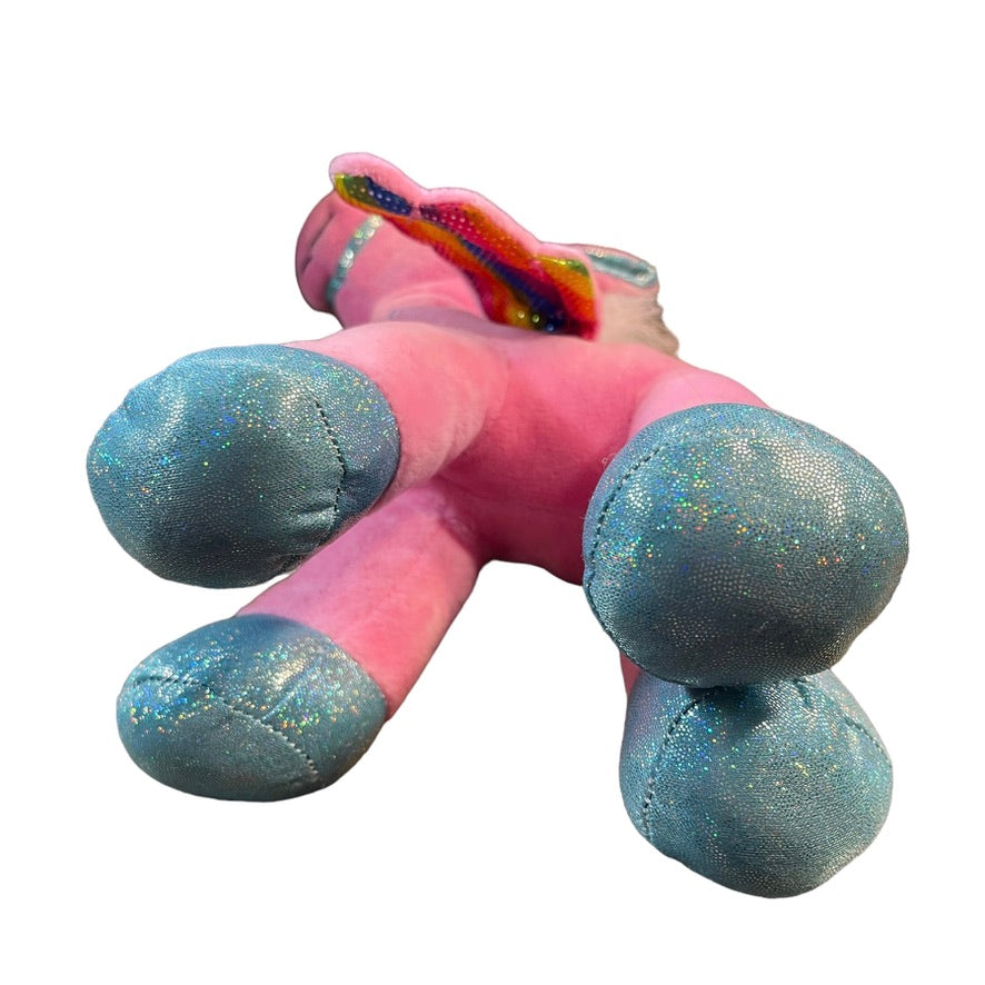 Snuggle Buddies Rainbow Flutter Unicorn Soft Pink Plush Embroidered Face, Sparkle Wings EUC