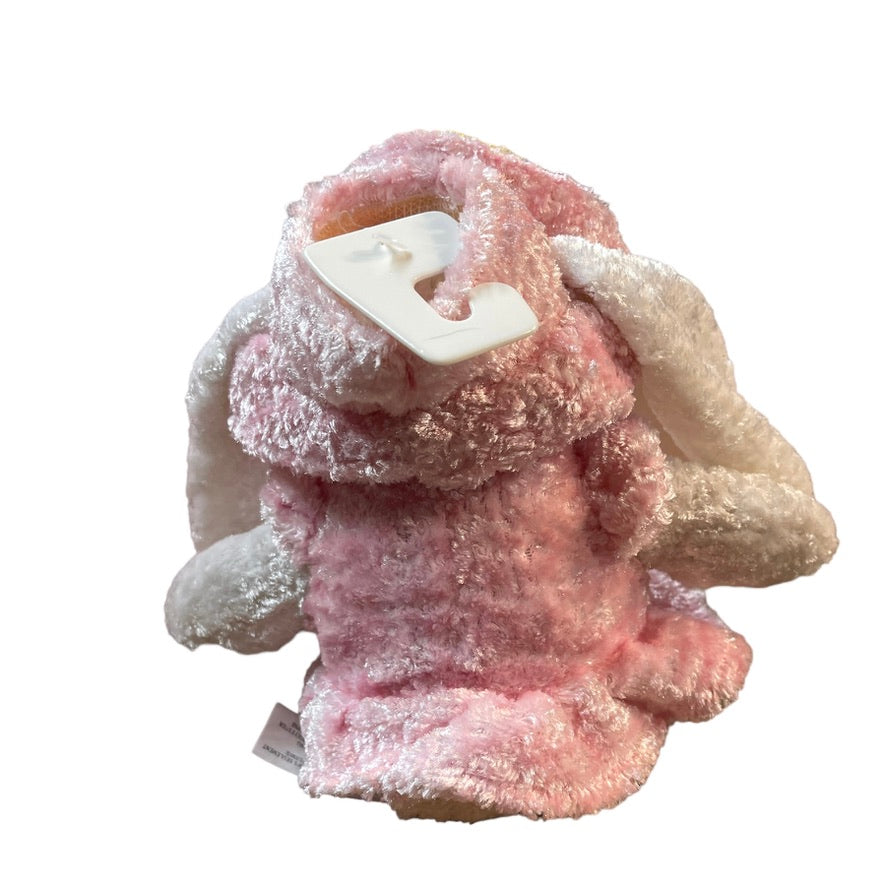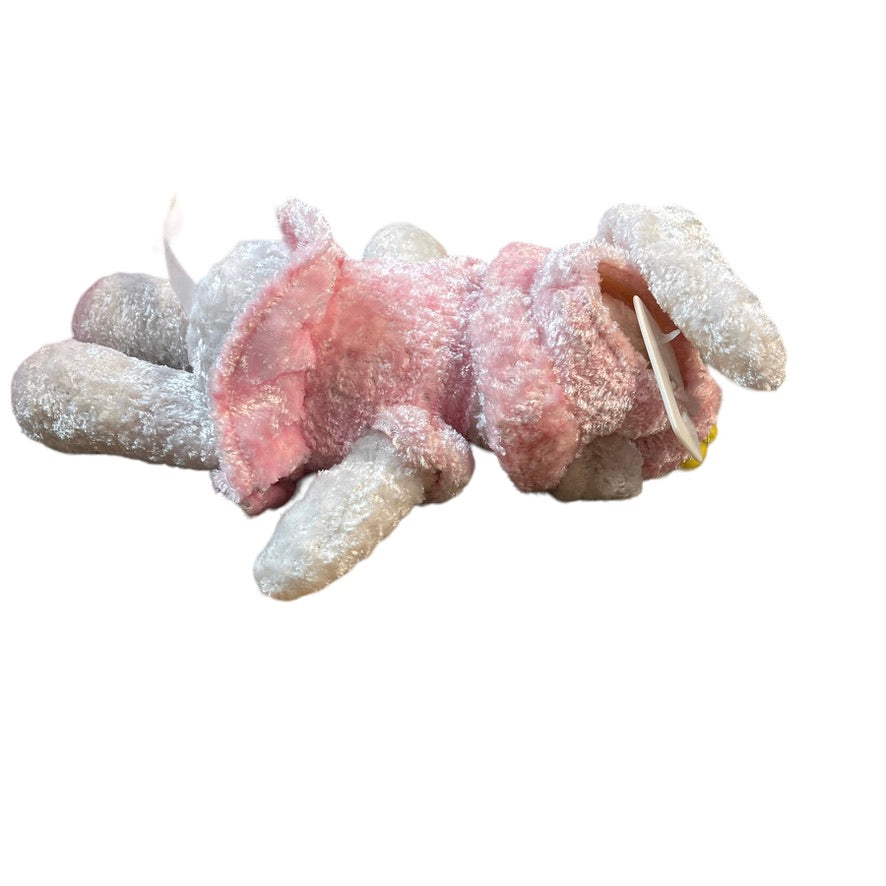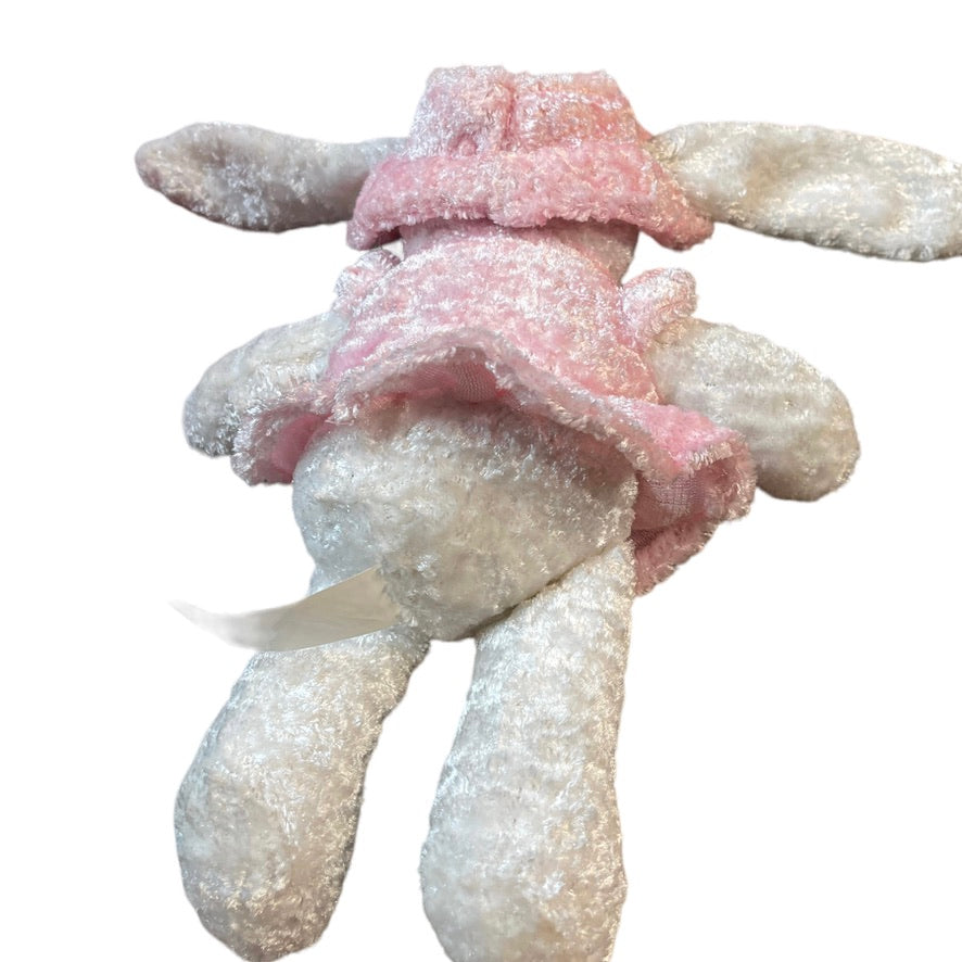 Pink & White Crushed Velvety Plush Easter Bunny Stuffed Animal Toy in EUC