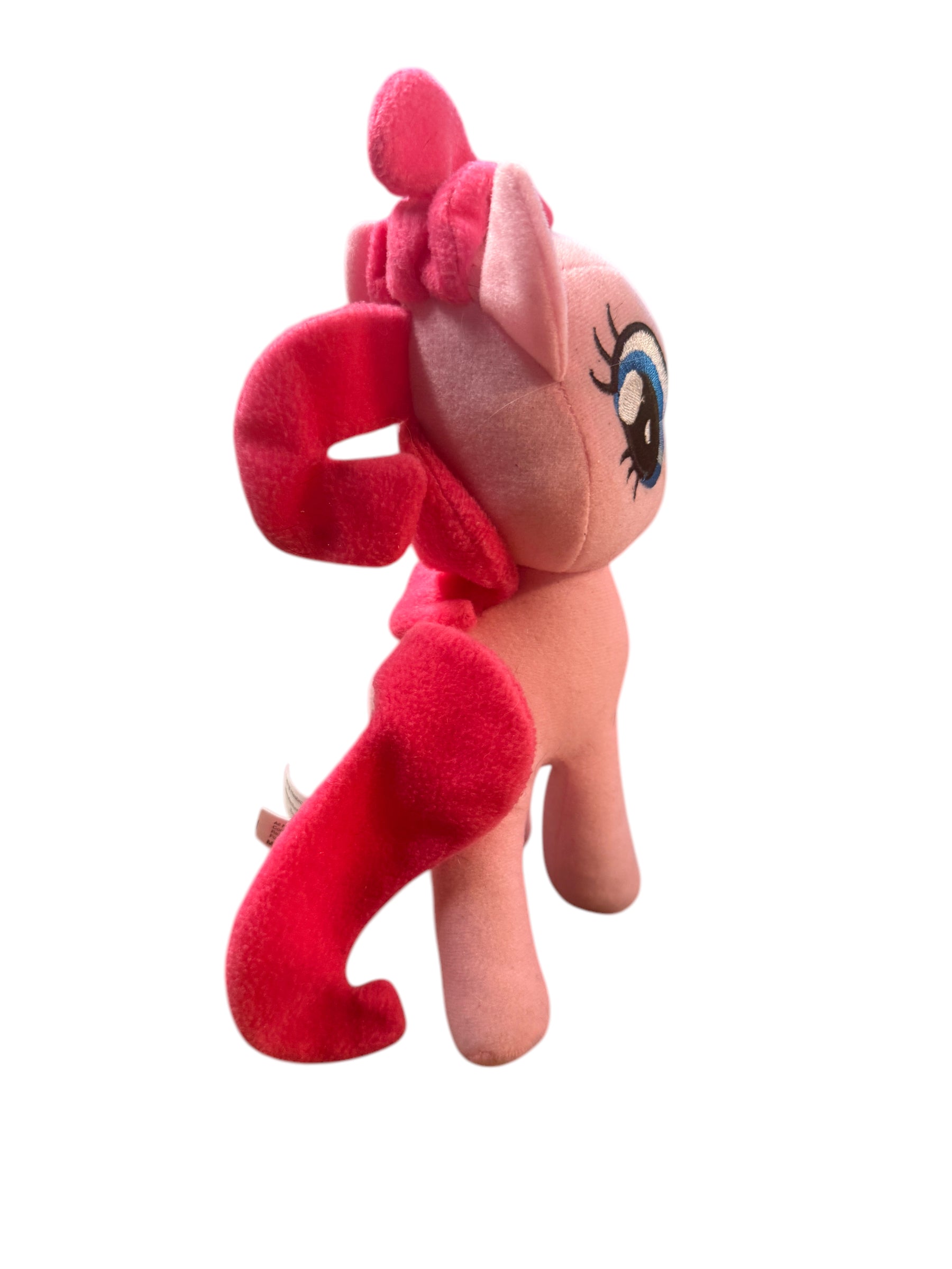 This pretty Hasbro pink pony, soft pink with deep pink fleece tail & mane is in very good preowned condition. Her huge embroidered eyes and blue and yellow cutie mark on her haunches add to her charm. A lovely addition to your toy room or collection! By Toy Factory