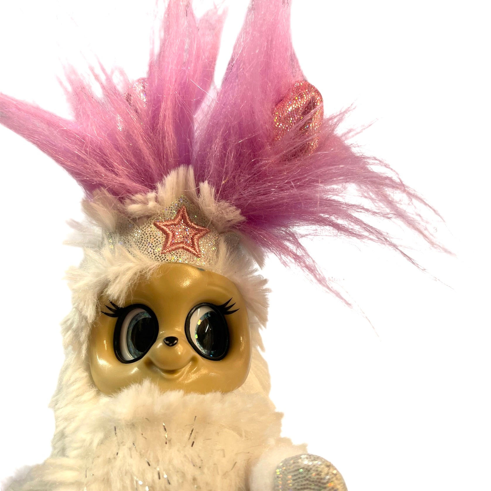 This cute little sparkly Wild Lavender Haired Fur Babies World stuffed animal pet is a delightful little interactive toy with Wiggly Ears & Rolling eyes. Easily operated by one little finger. An adorable little toy!