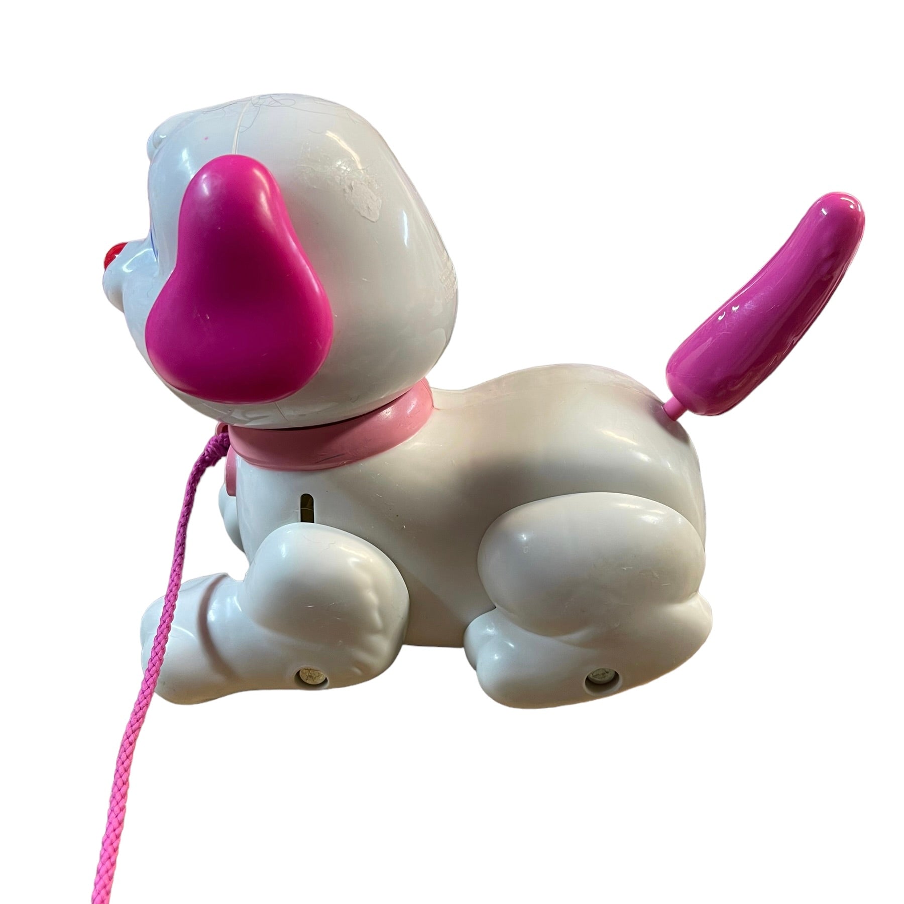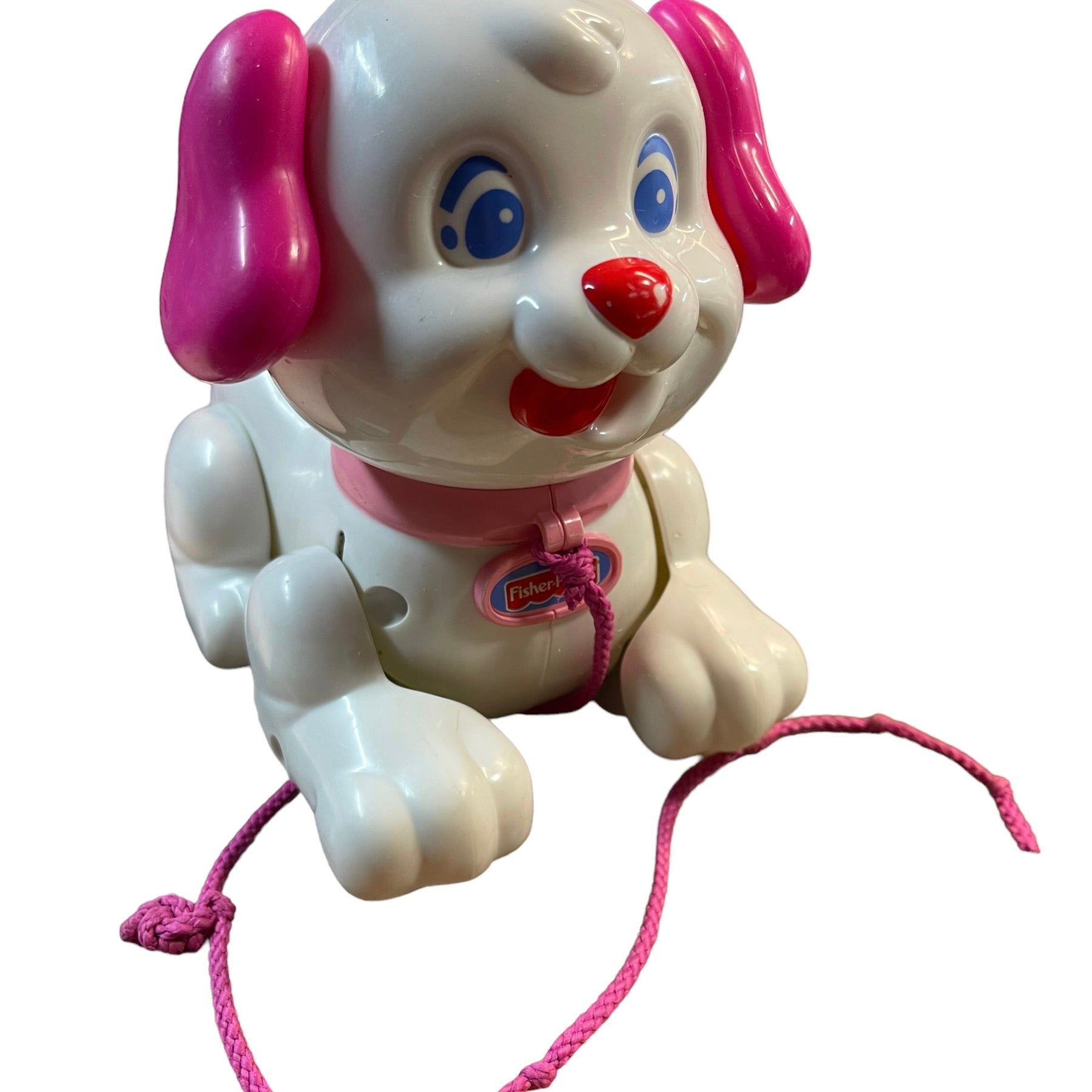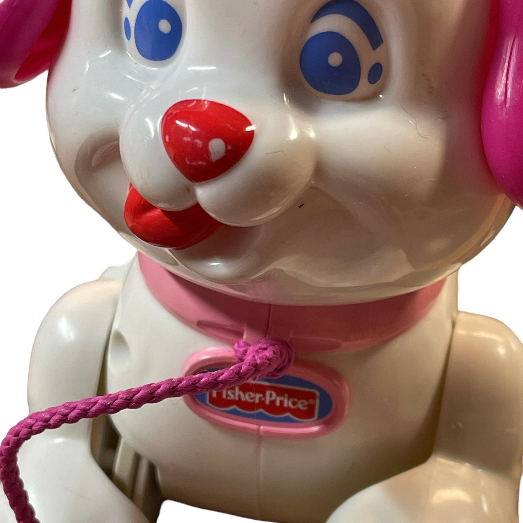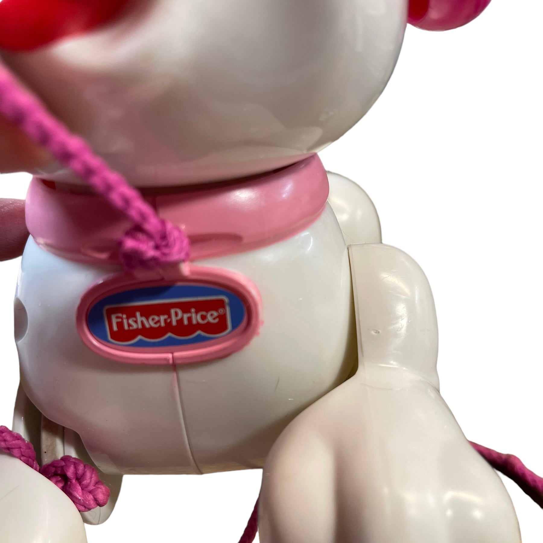Adorable Fisher Price Pet Puppy on wheels with a pull string. A sweet little pet for your toddler! Knotted pull string. Good preowned condition.