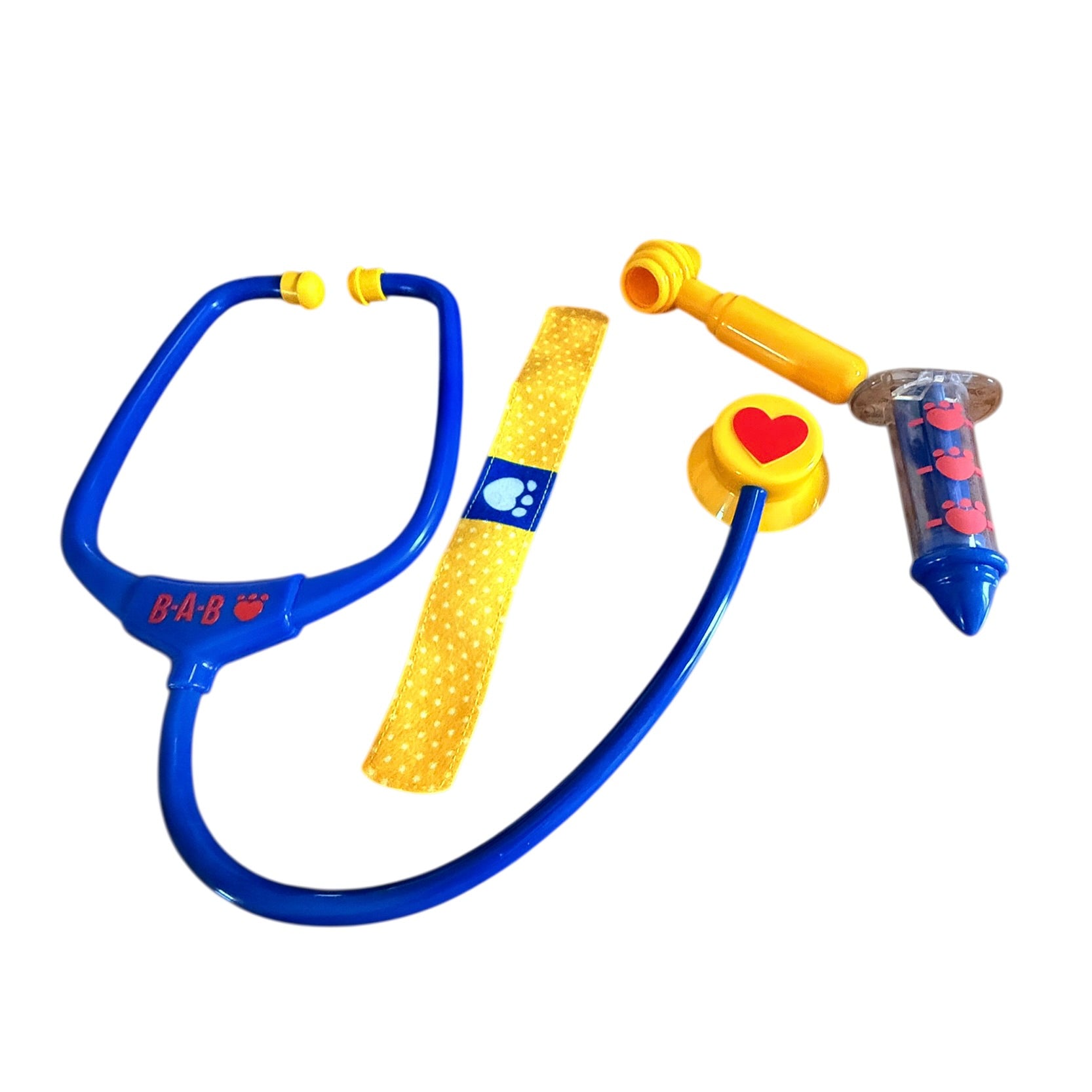 BAB Workshop Vet Set provides everything you need to take care of all of your Build-a-Bears and other animal friends! Kit includes bandage, syringe, stethoscope and cone. Preowned, appears non, or very gently used . A great toy for aspiring veterinarians!