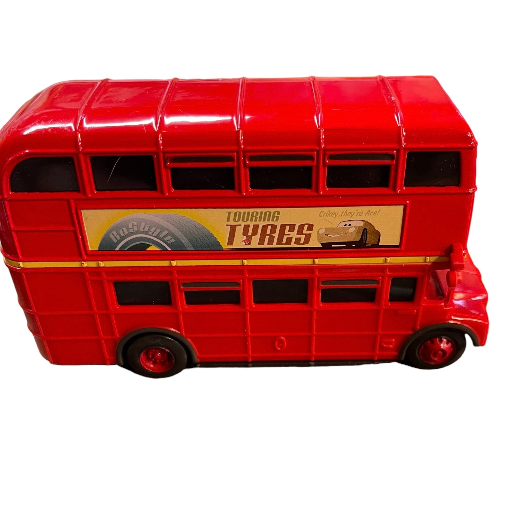 Red Disney Pixar Cars Double Decker Bus #91 Crosshead Touring Tyres
