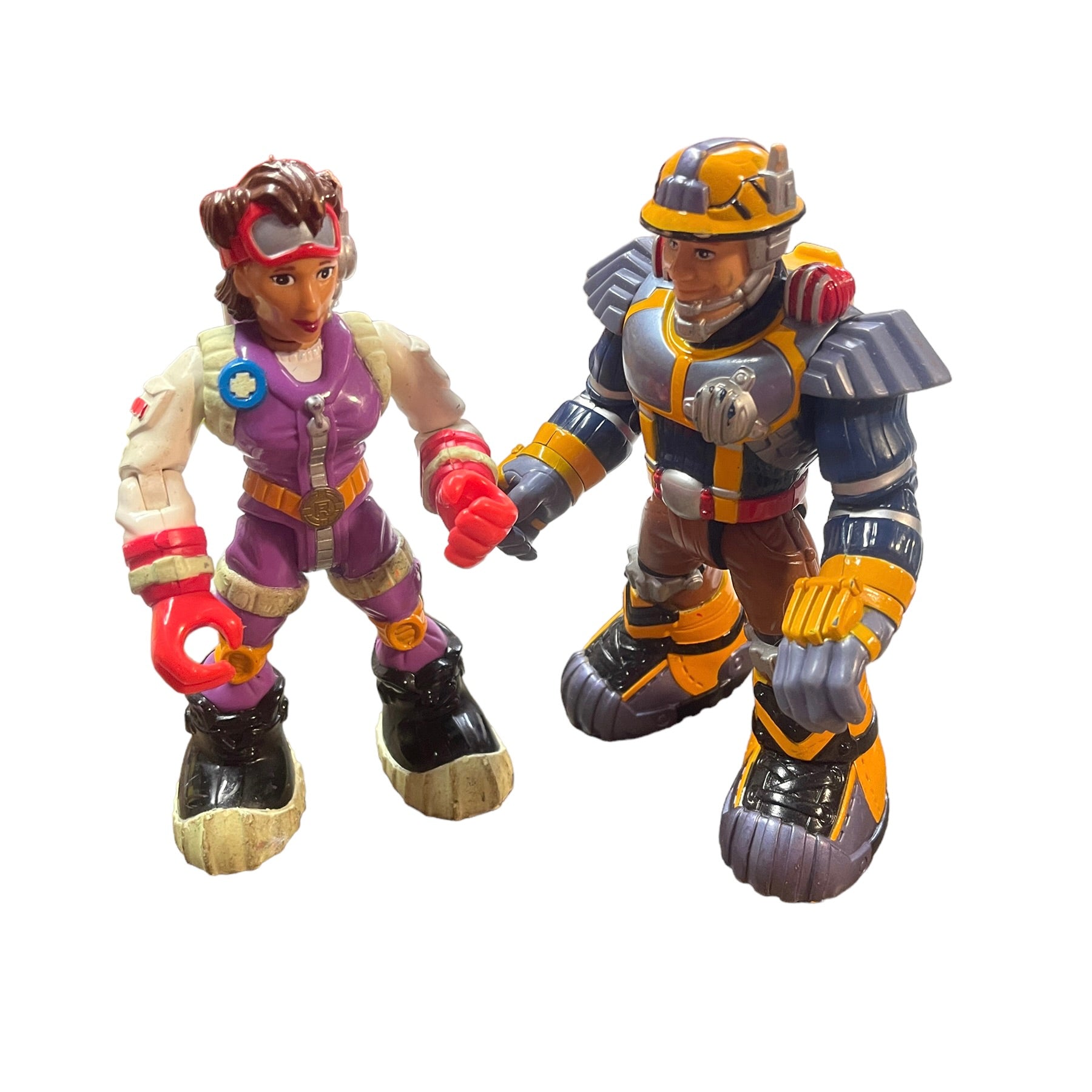 Lot of 2 Rescue Heroes, Mattel 1999 Fisher Price 77119, Ariel Flyer & Single Figure C9562 Mattel 2004, Both in very good preowned condition. No backpacks or accessories.