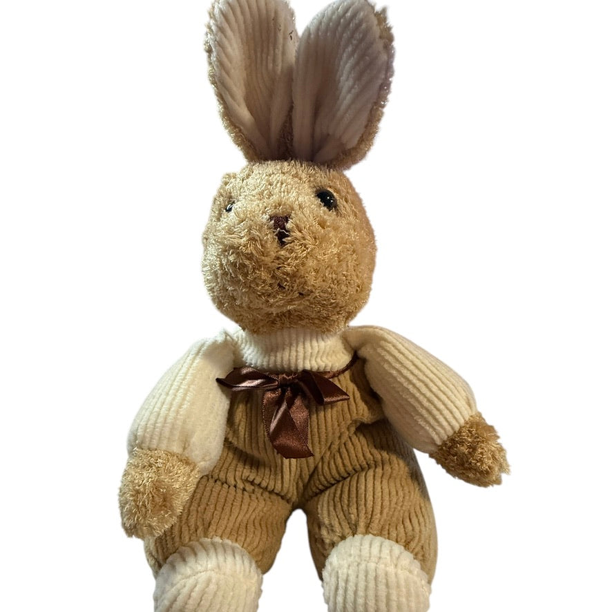 Royal Plush Toys Brown & Beige 12 " Seated Striped Corduroy Bunny Rabbit Plush Stuffed Toy EUC