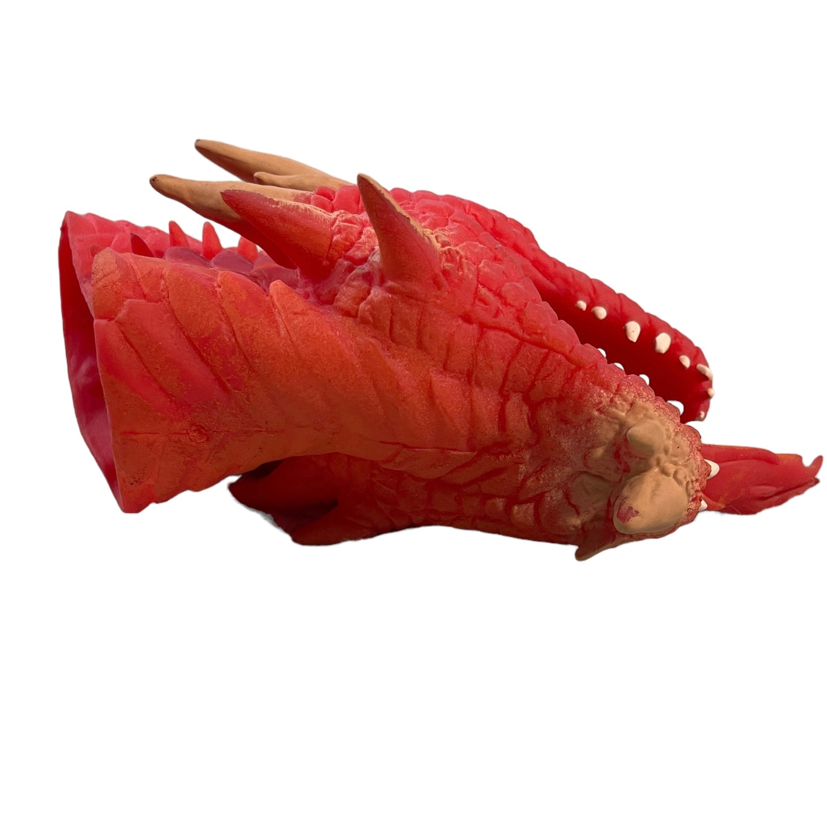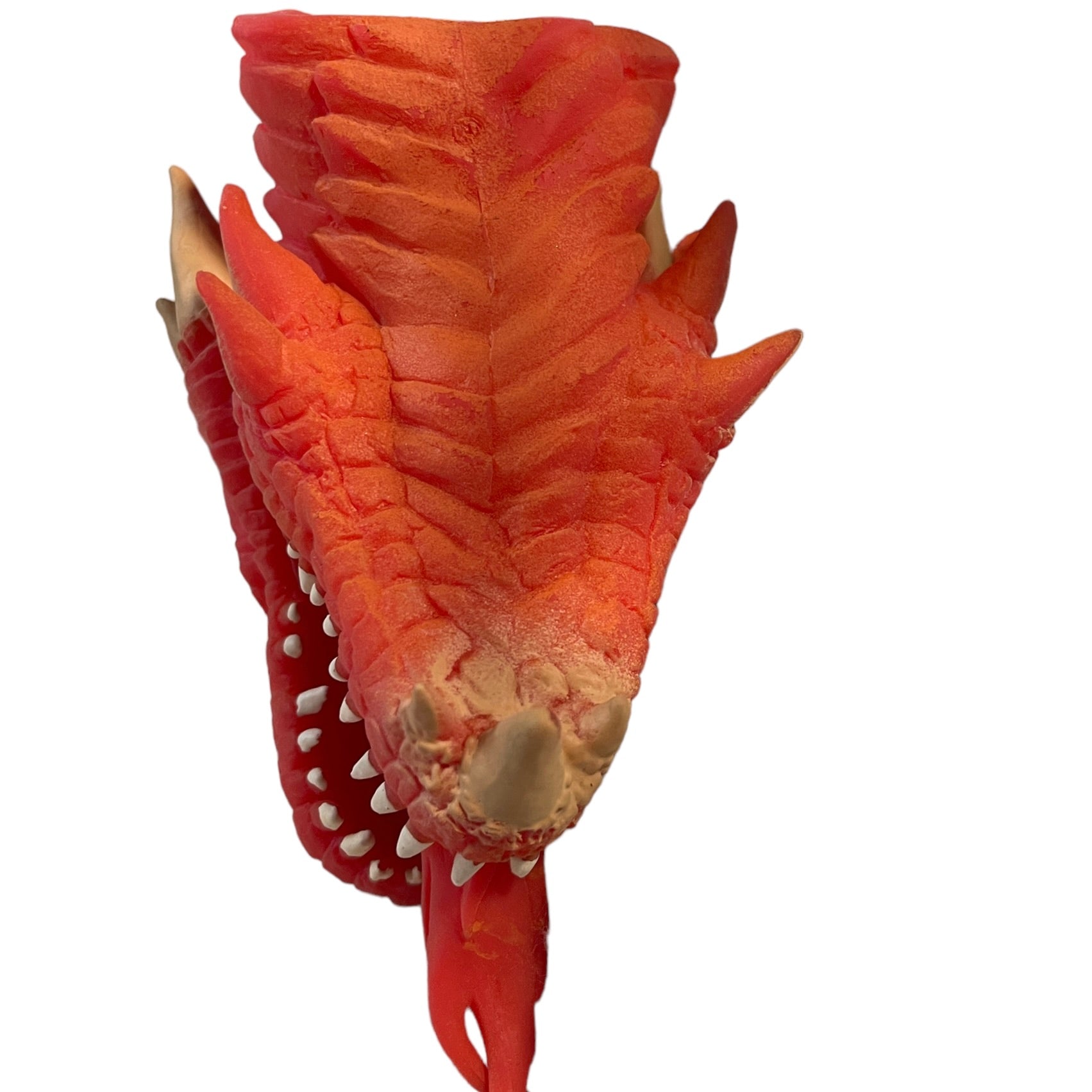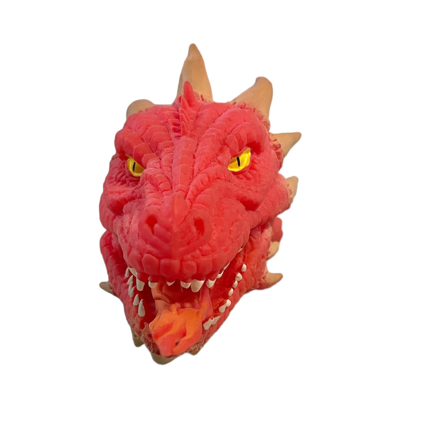 6" Schylling Dragon Puppet is made of soft, moveable rubber is amazing in its fire breathing detail. White teeth and slitty yellow eyes make this dragon more than a little scary! This soft, stretchy puppet toy is In excellent preowned condition.