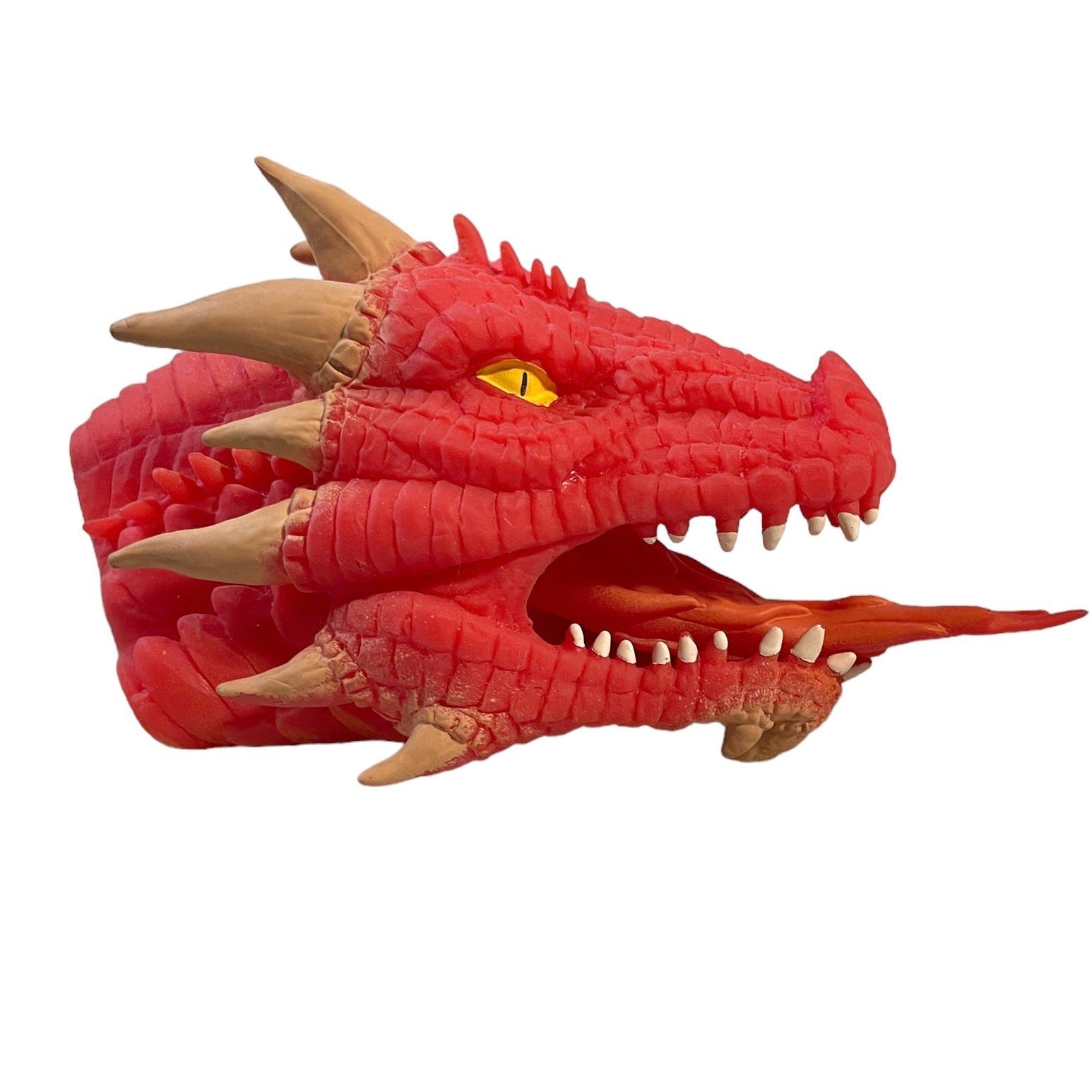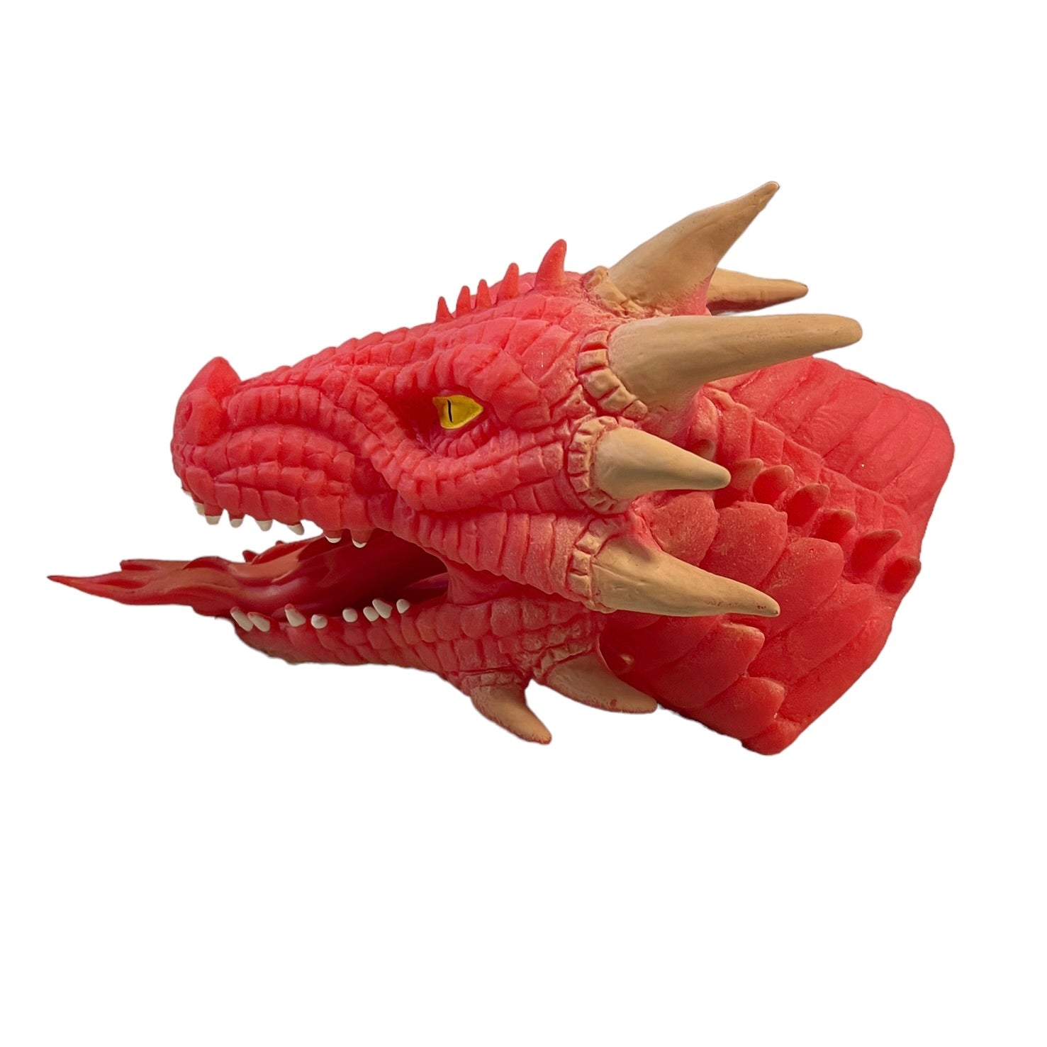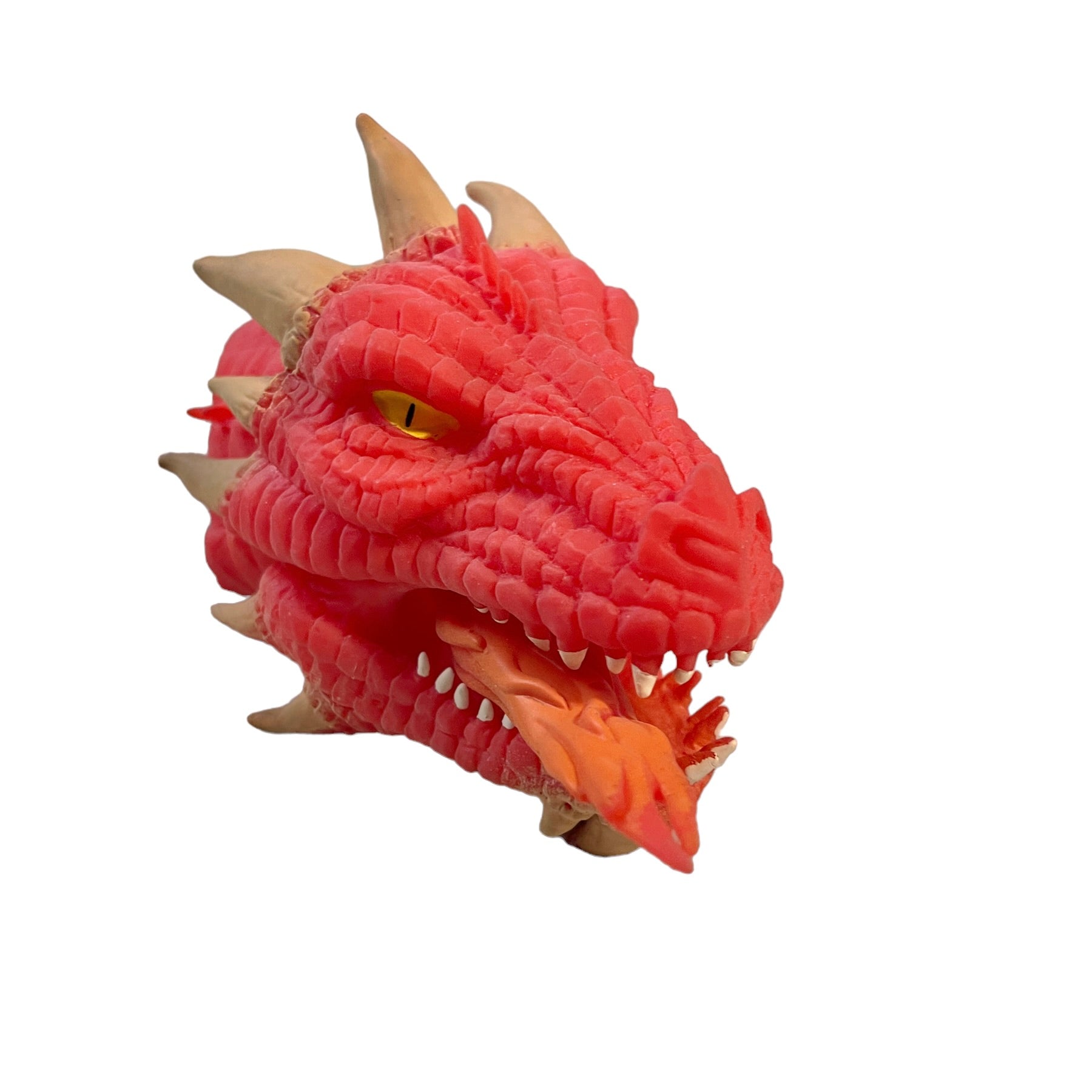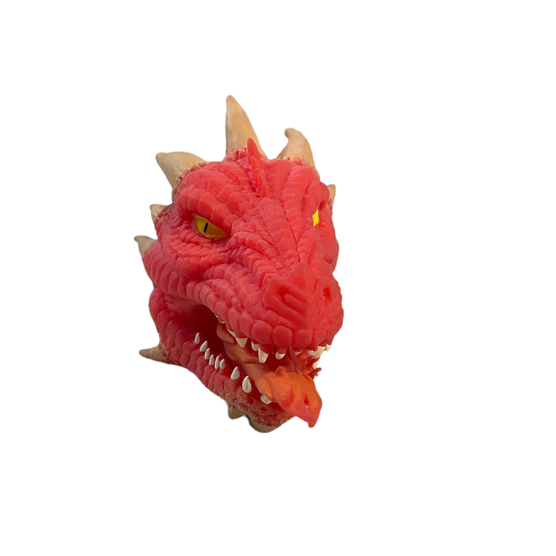 Schylling Fire-Breathing RED Dragon, Soft Stretchy Rubber Hand Puppet 6" Yellow Eyes