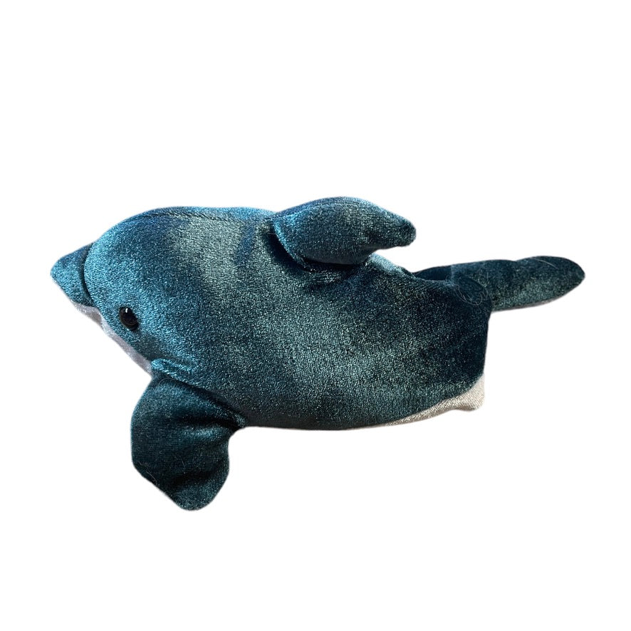 Deep Teal with blue belly, SeaWorld Dolphin Stuffed Animal Plush in good preowned condition. Shimmery and so pretty! Perfect size for little Marine Biologists!