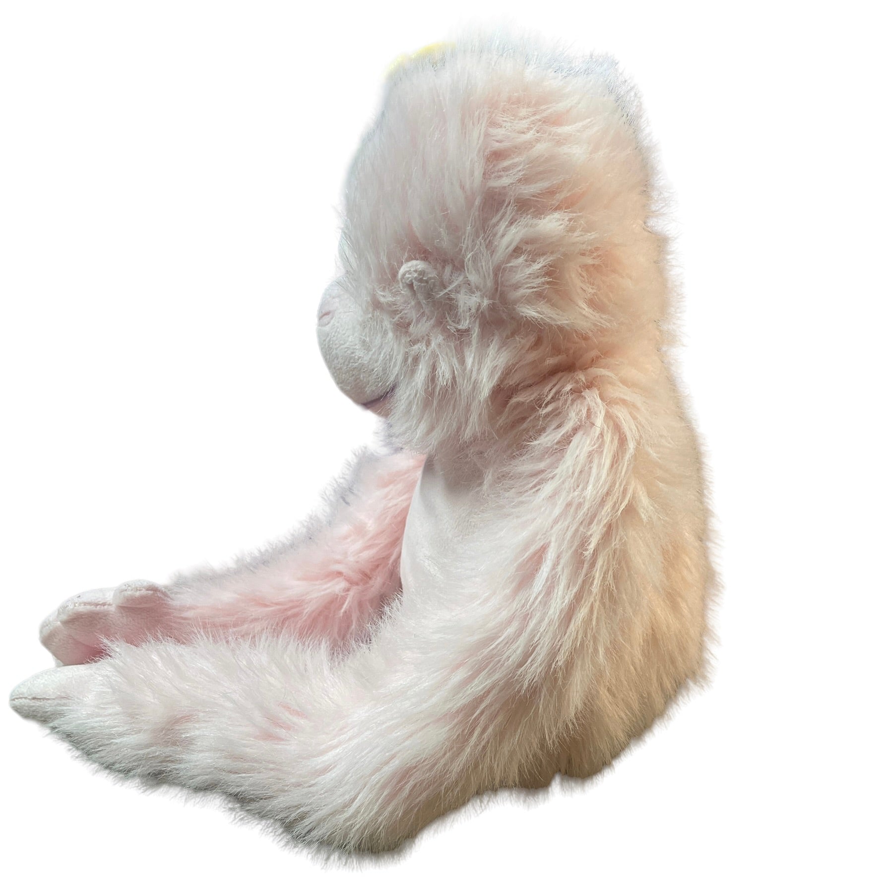 Soft Pink 17" Long Haired Hanging Ape/Gorilla/Monkey, Glass Eyes, Bellybutton & Big Smile