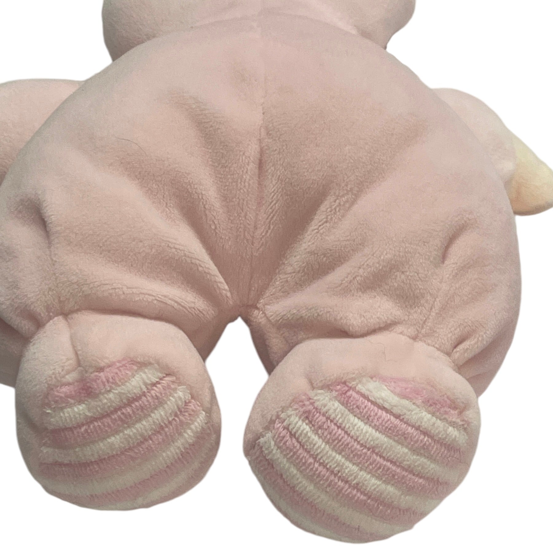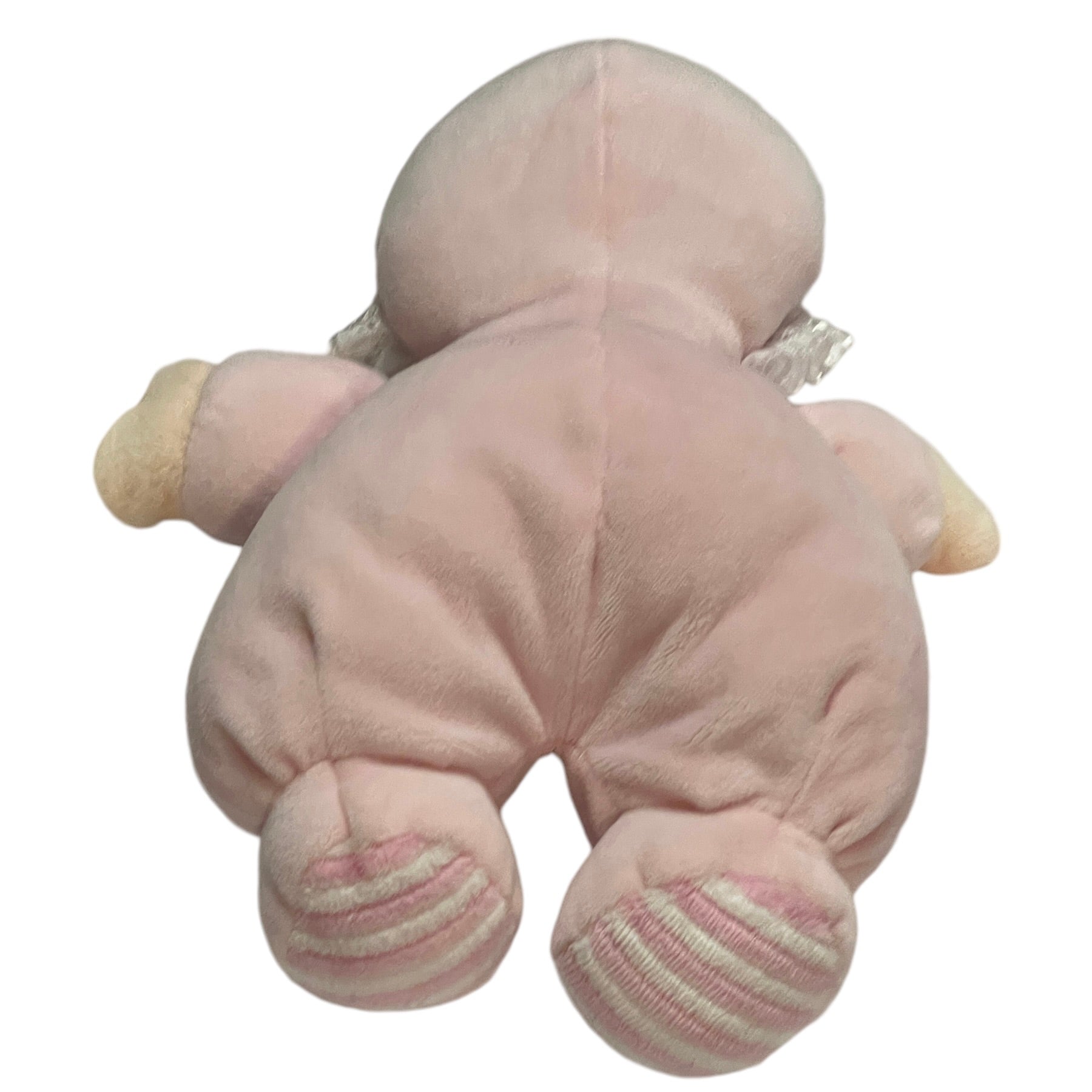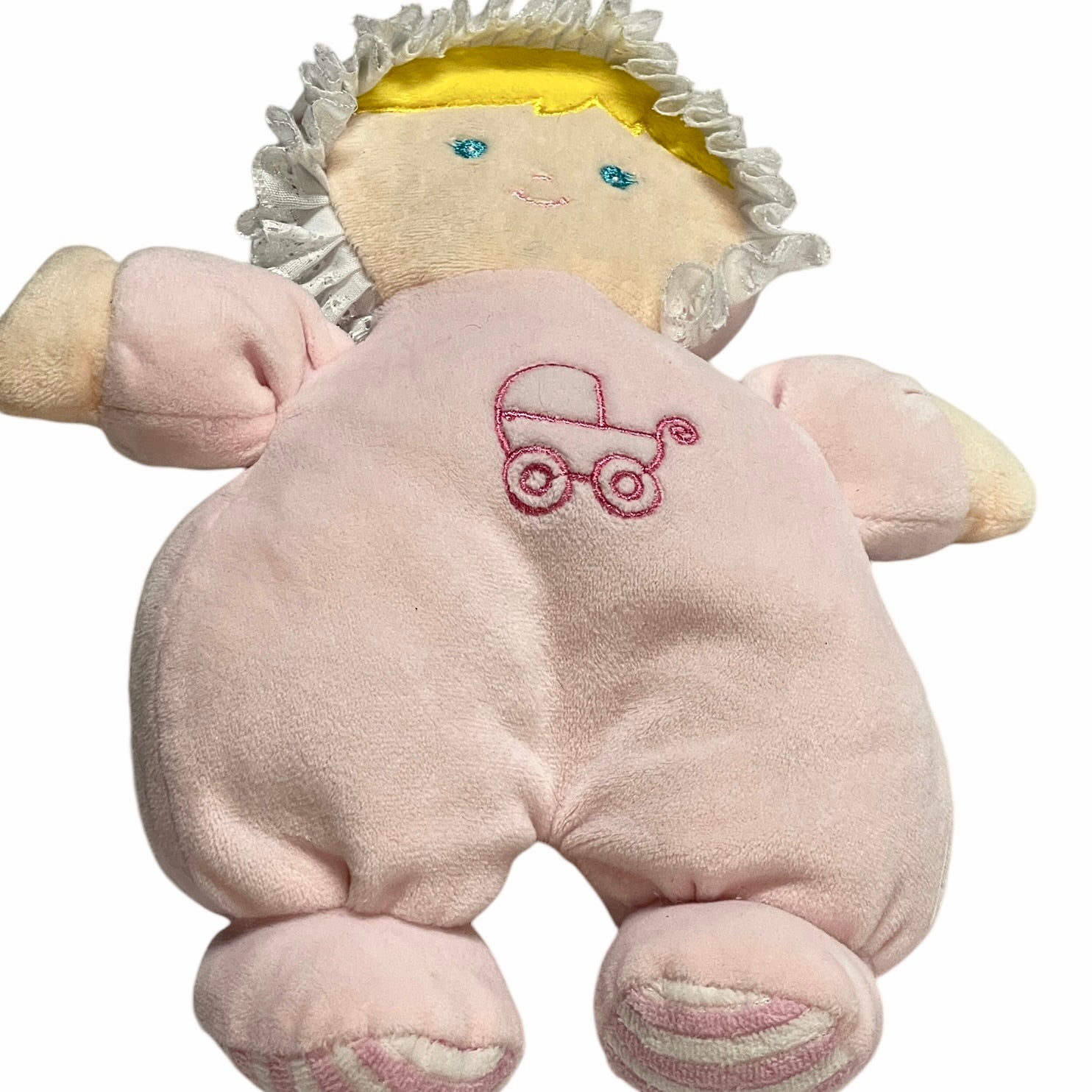 Incredibly soft and sweet, 9" baby doll baby rattle is dressed in the softest pink with striped feet and the bluest eyes! Excellent preowned condition