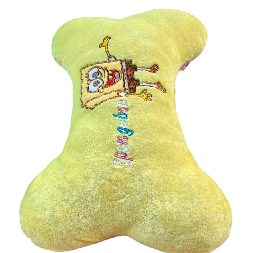 Sponge Bob Embroidered 15" Plush Yellow Bone Shaped Zippered Pillow -So Huggable!