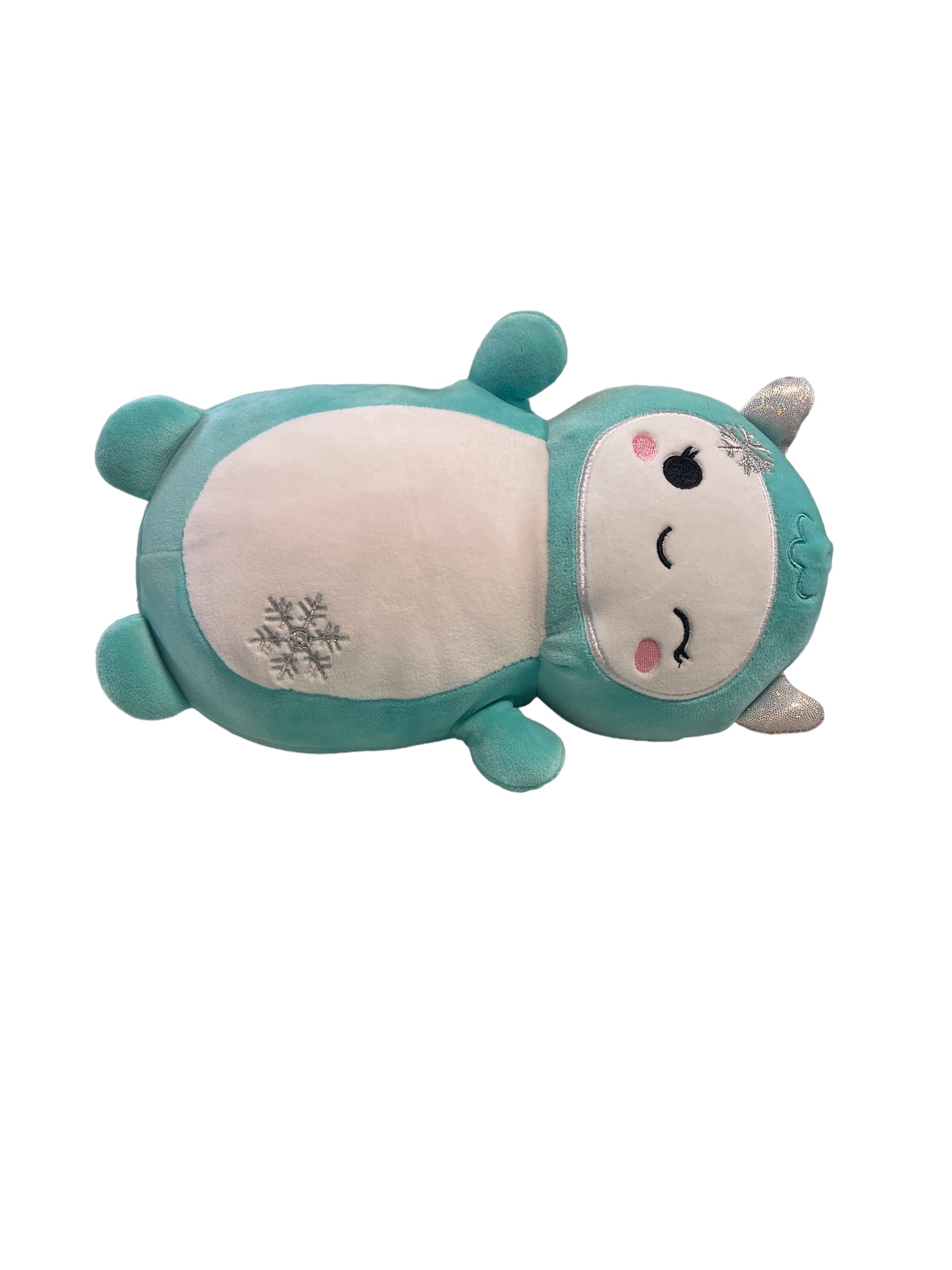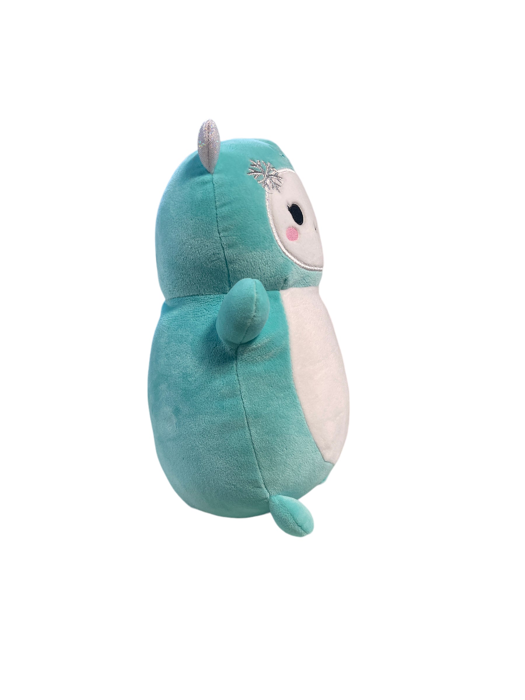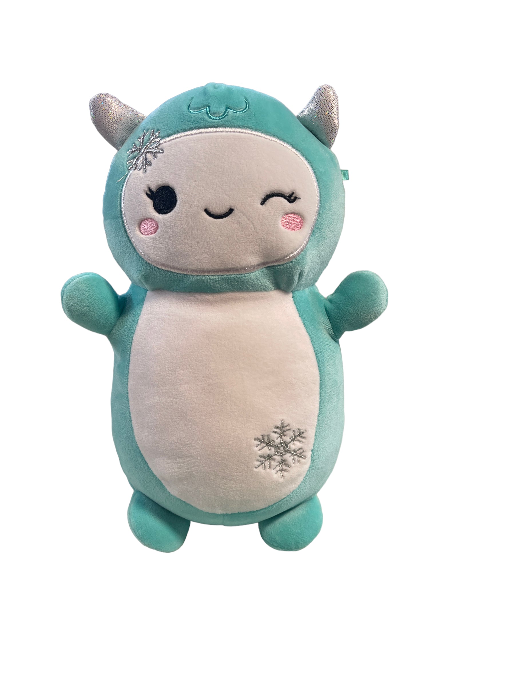 Squishmallow Hug Mee Yollie the Yeti Plush, Aqua with Silver Snowflakes & White Belly EUC