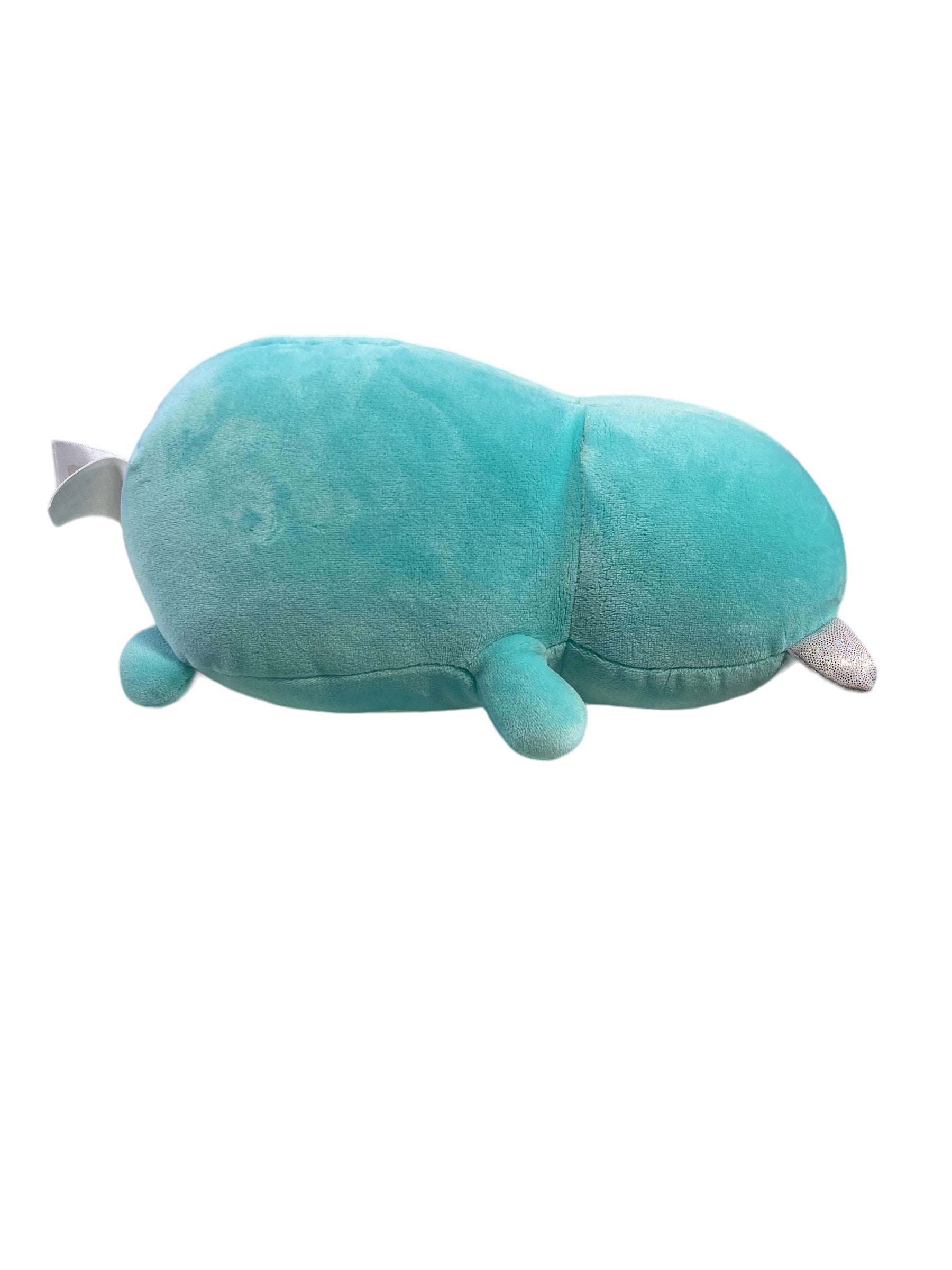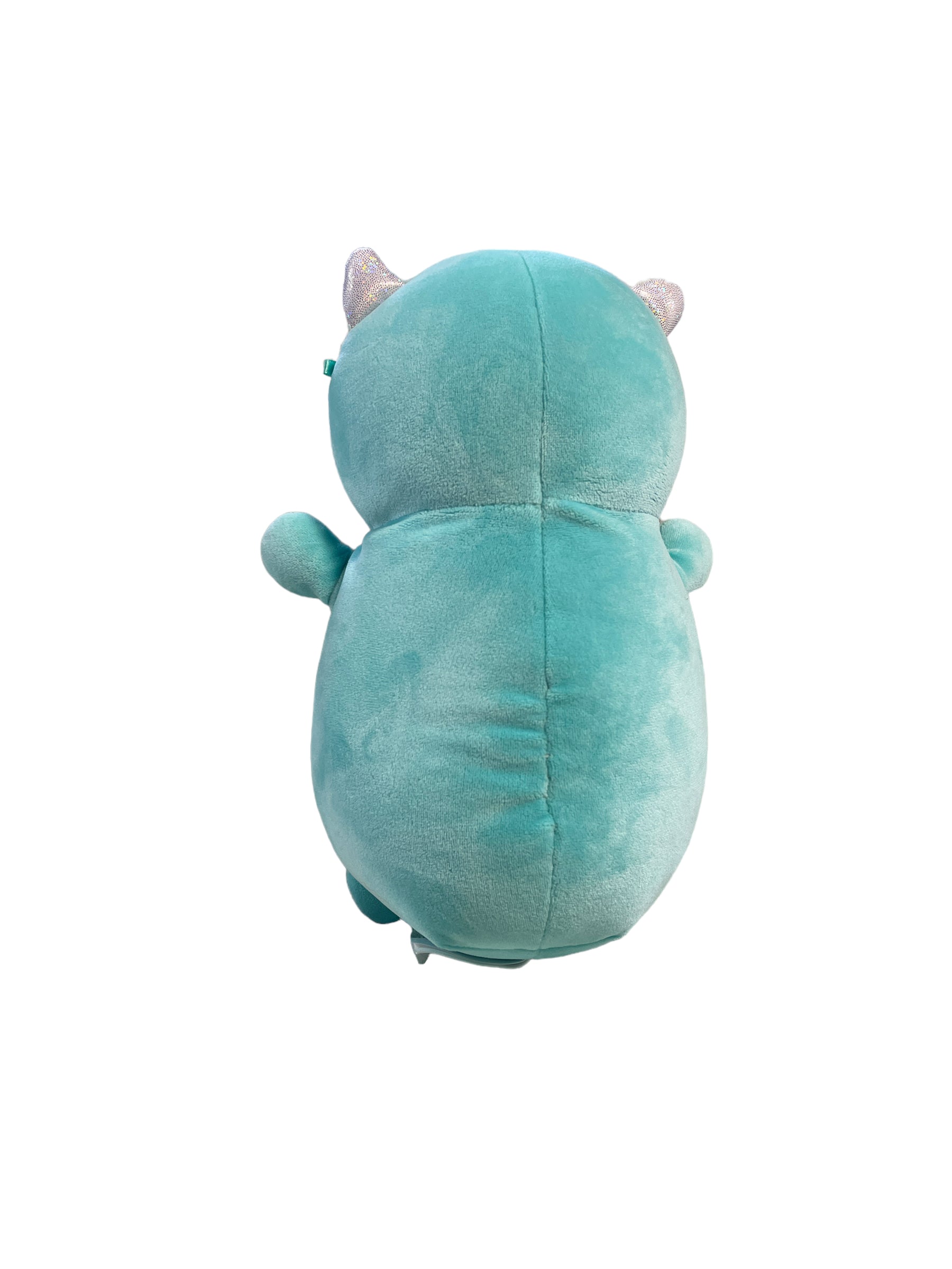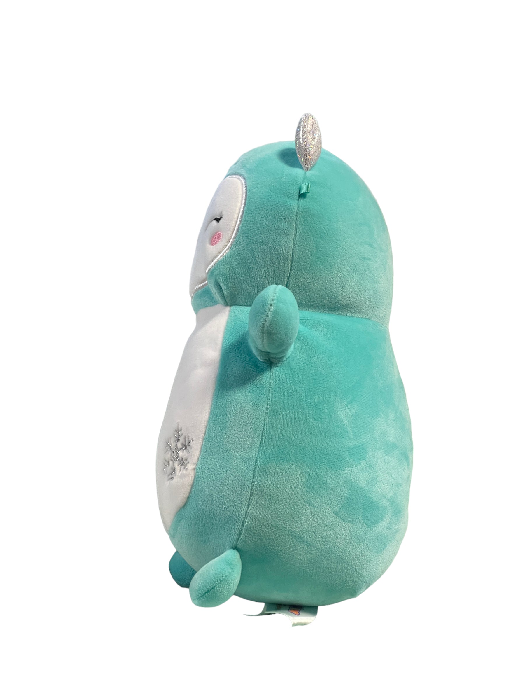 Squishmallow Hug Mee Yollie the Yeti Plush, Aqua with Silver Snowflakes & White Belly EUC
