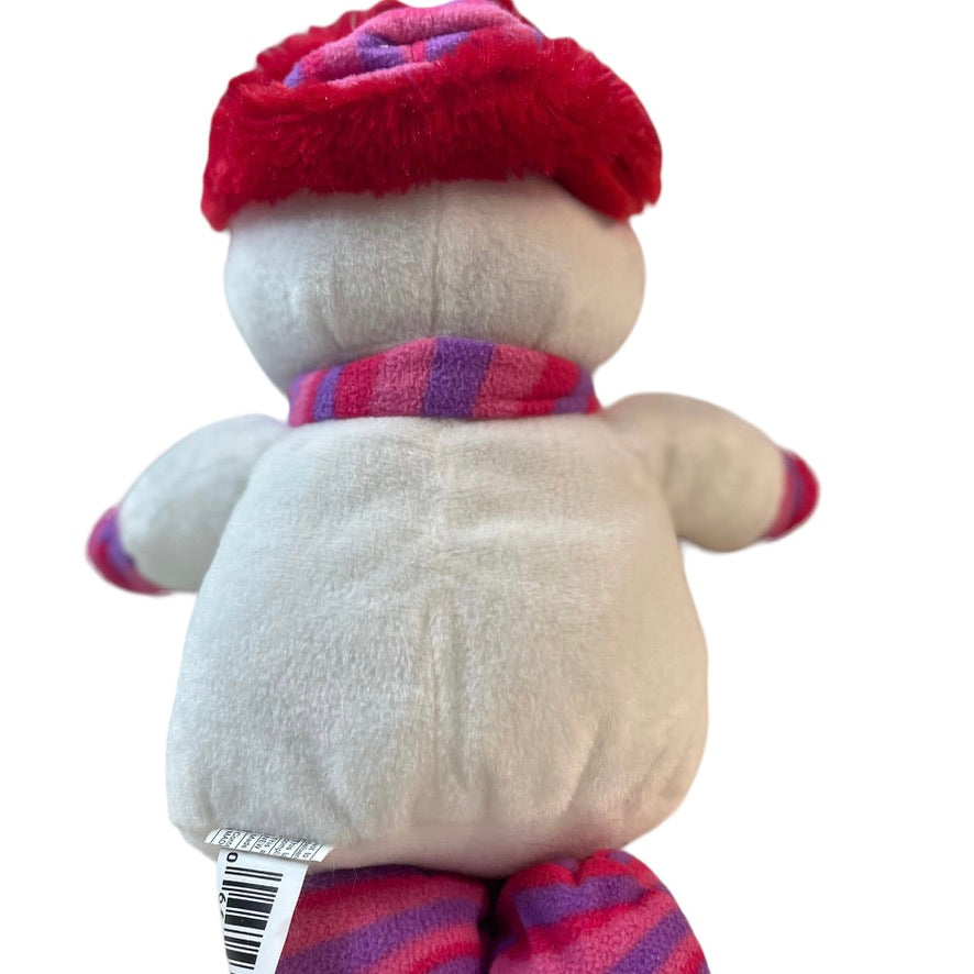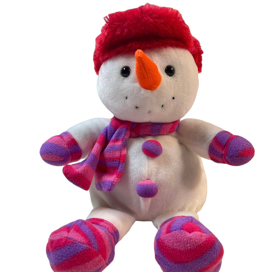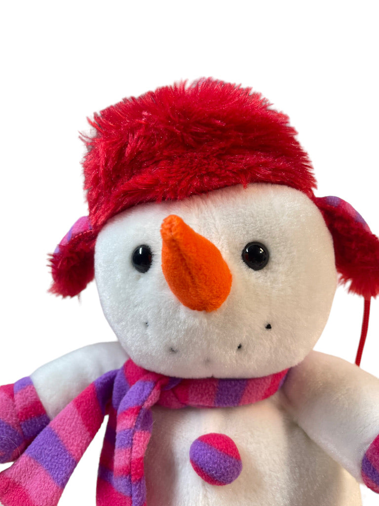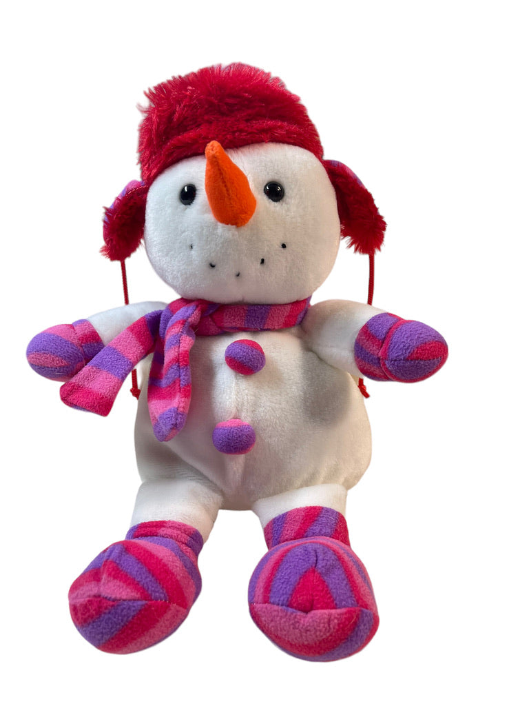 Stuffed 14" Snowman Plush Pink/ Purple Striped Clothes and a Carrot Nose!