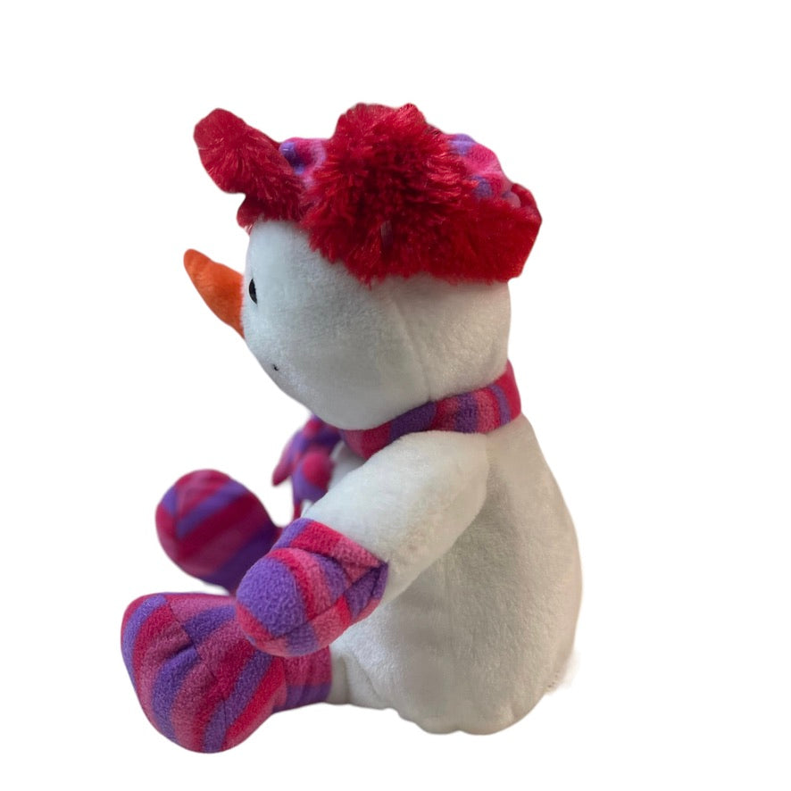 An adorable Plush Snowman complete with 'coal' eyes and mouth and a cute carrot nose. A striped outfit complete with Trapper Hat keeps this little guy warm and snuggly!