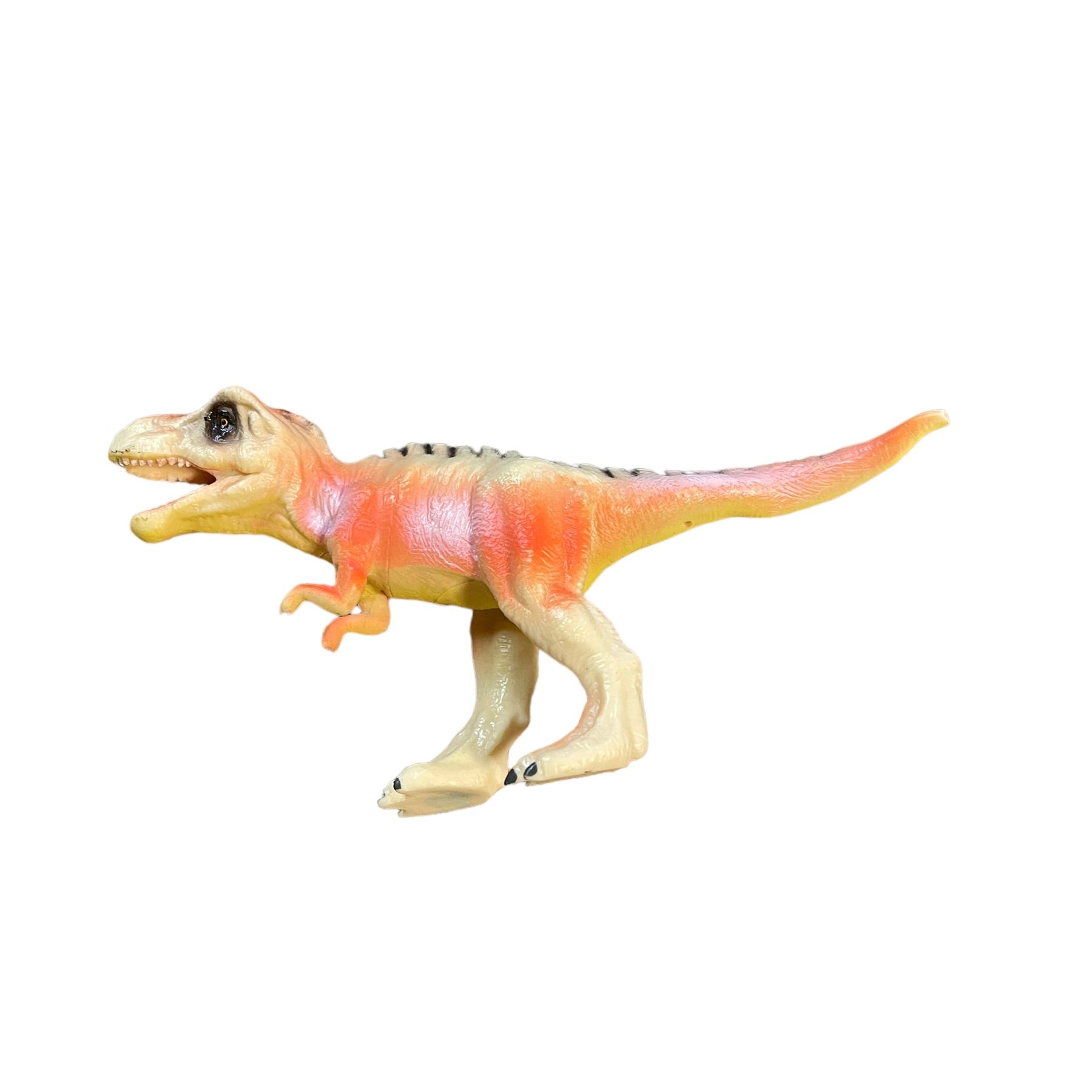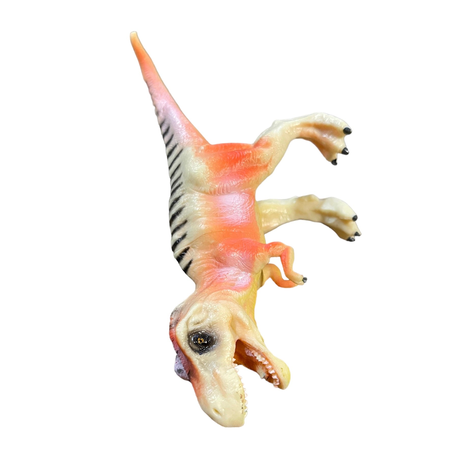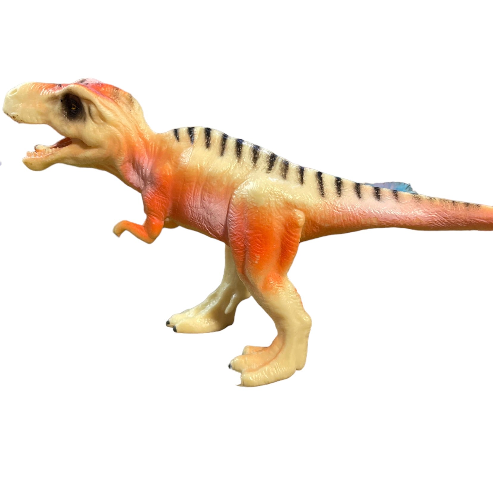 Tangerine Peach 7" Tyrannosaurus Rex Plastic Dinosaur Toy With Black Stripes in EUC