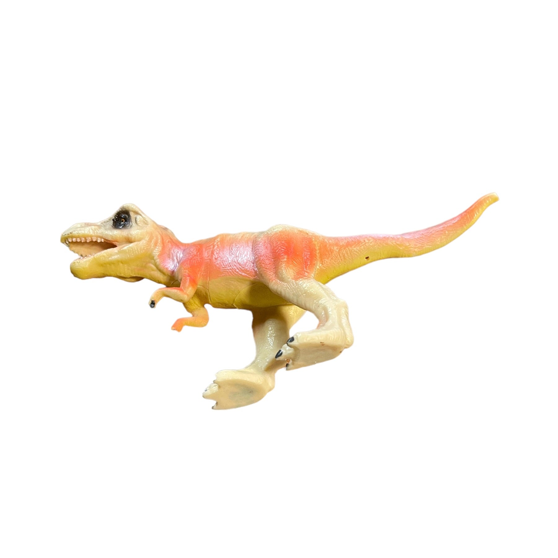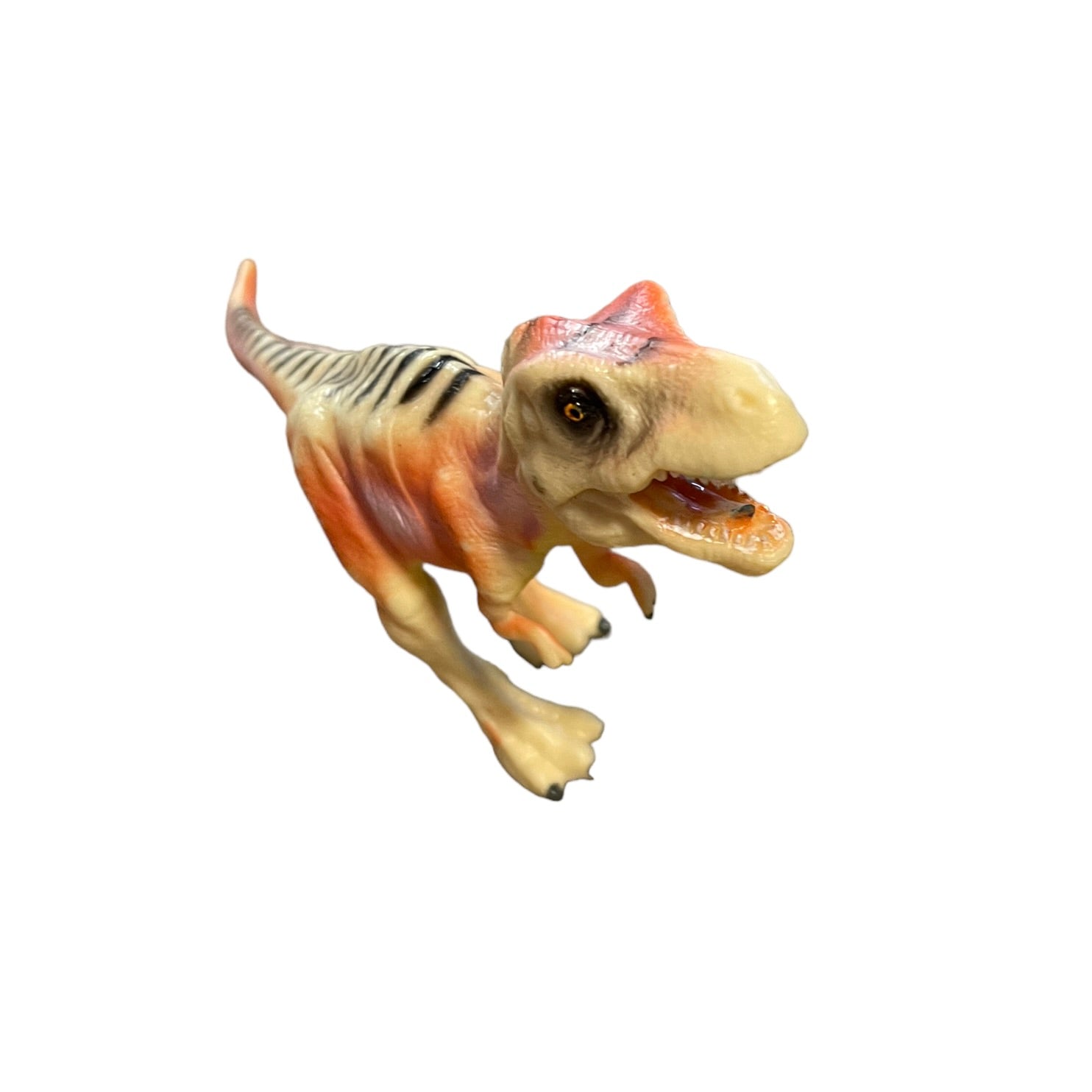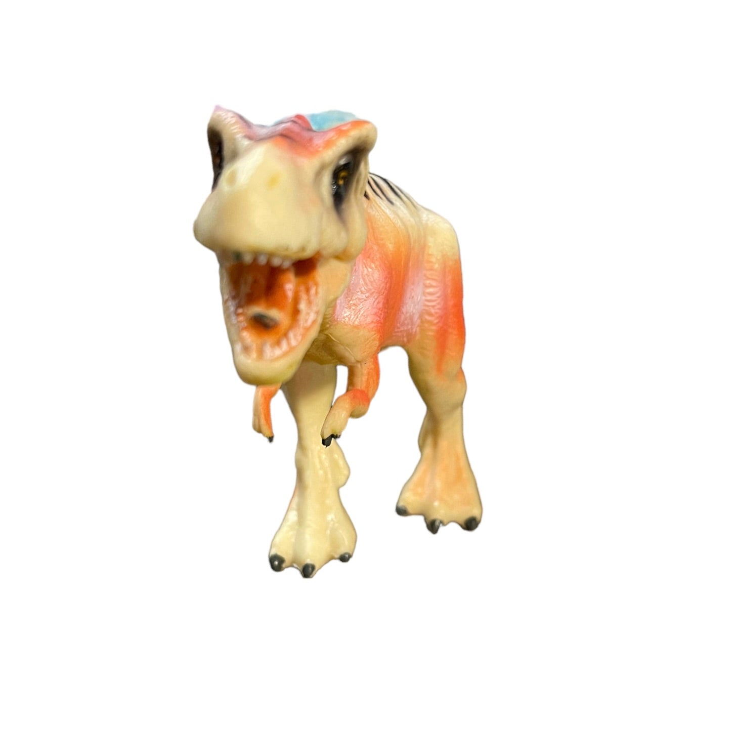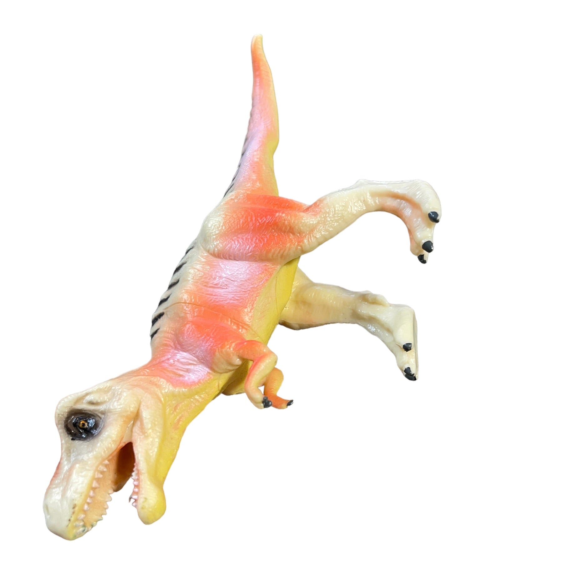 Tangerine Peach 7" Tyrannosaurus Rex Plastic Dinosaur Toy With Black Stripes in EUC