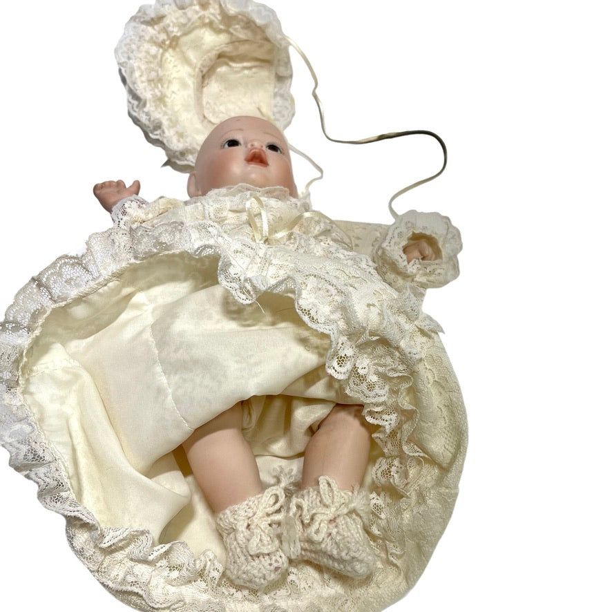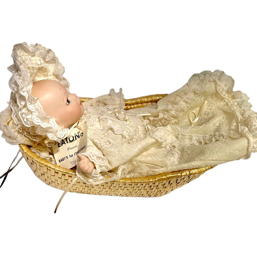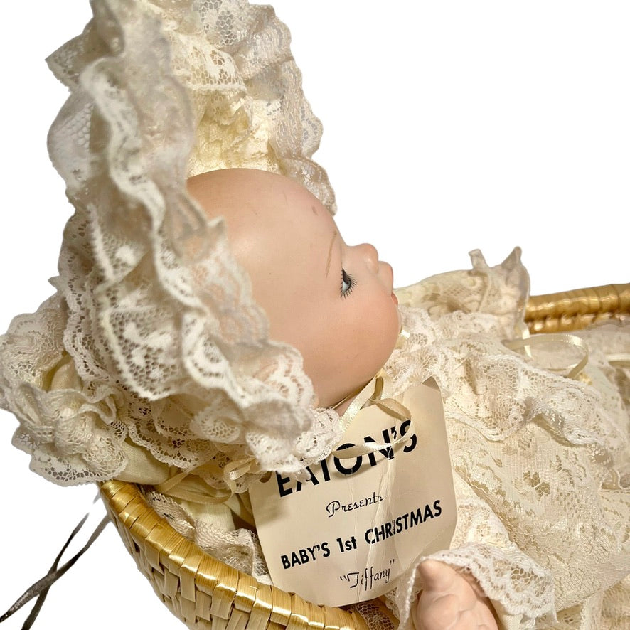 Vintage Eaton's Baby's First Christmas Music Box & Doll by Artist, April Katz, 1985