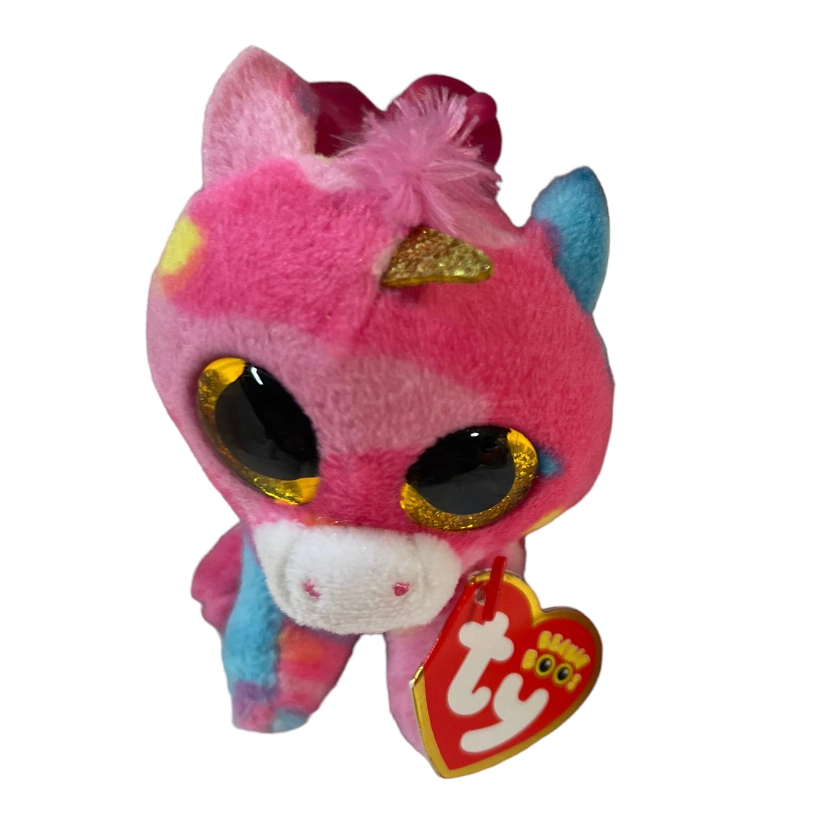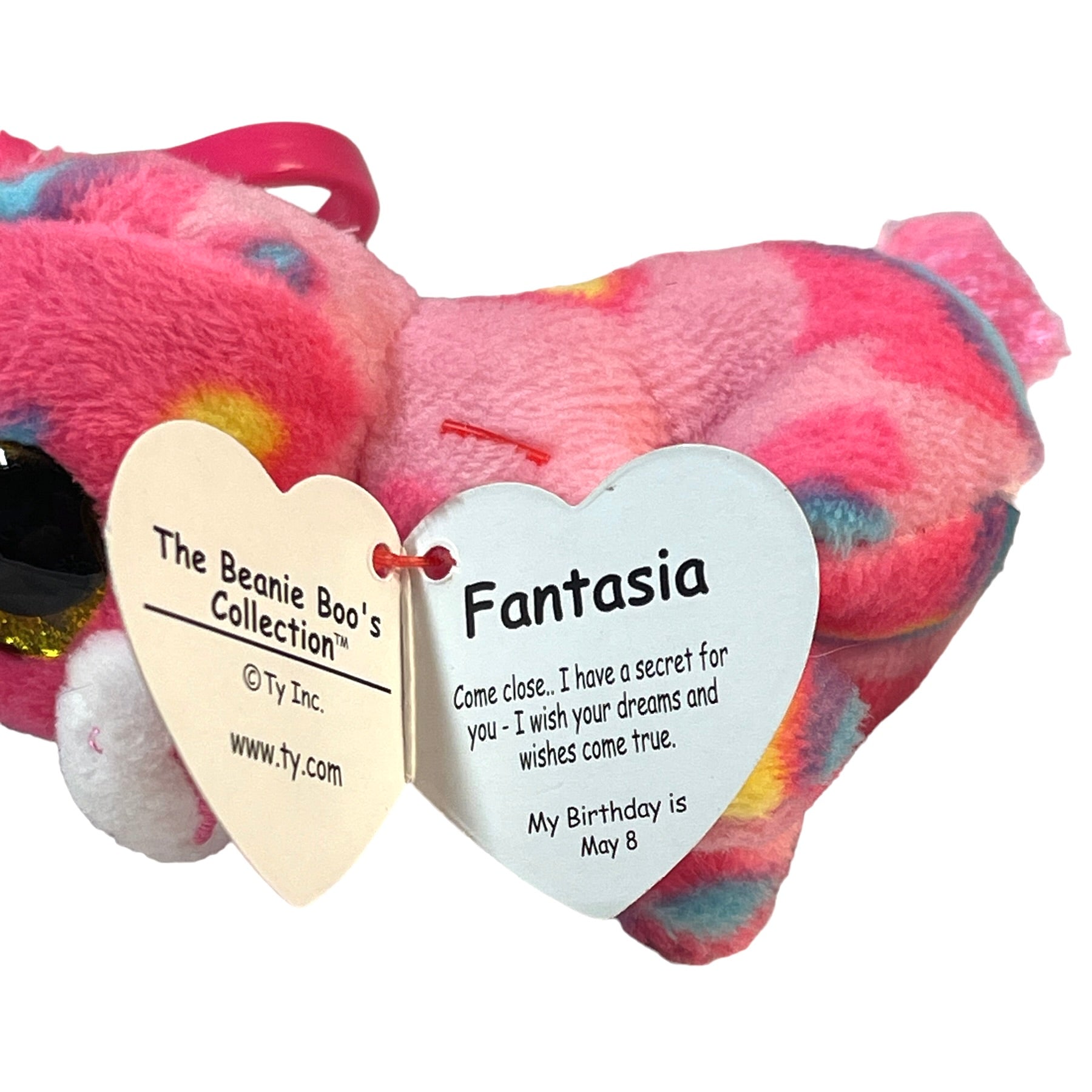 Tiny 4" Beanie Boo Fantasia Backpack Clip Shiny Gold Eyes, Multicoloured Body