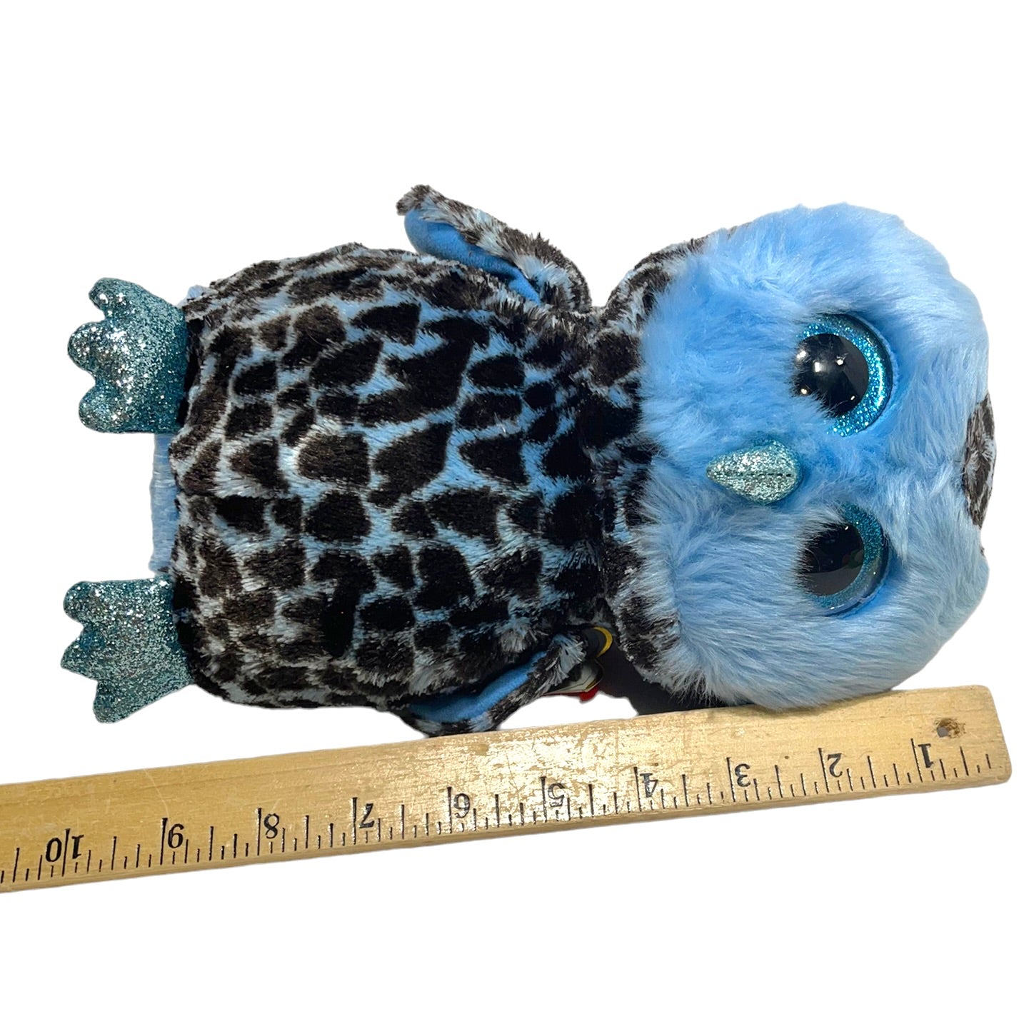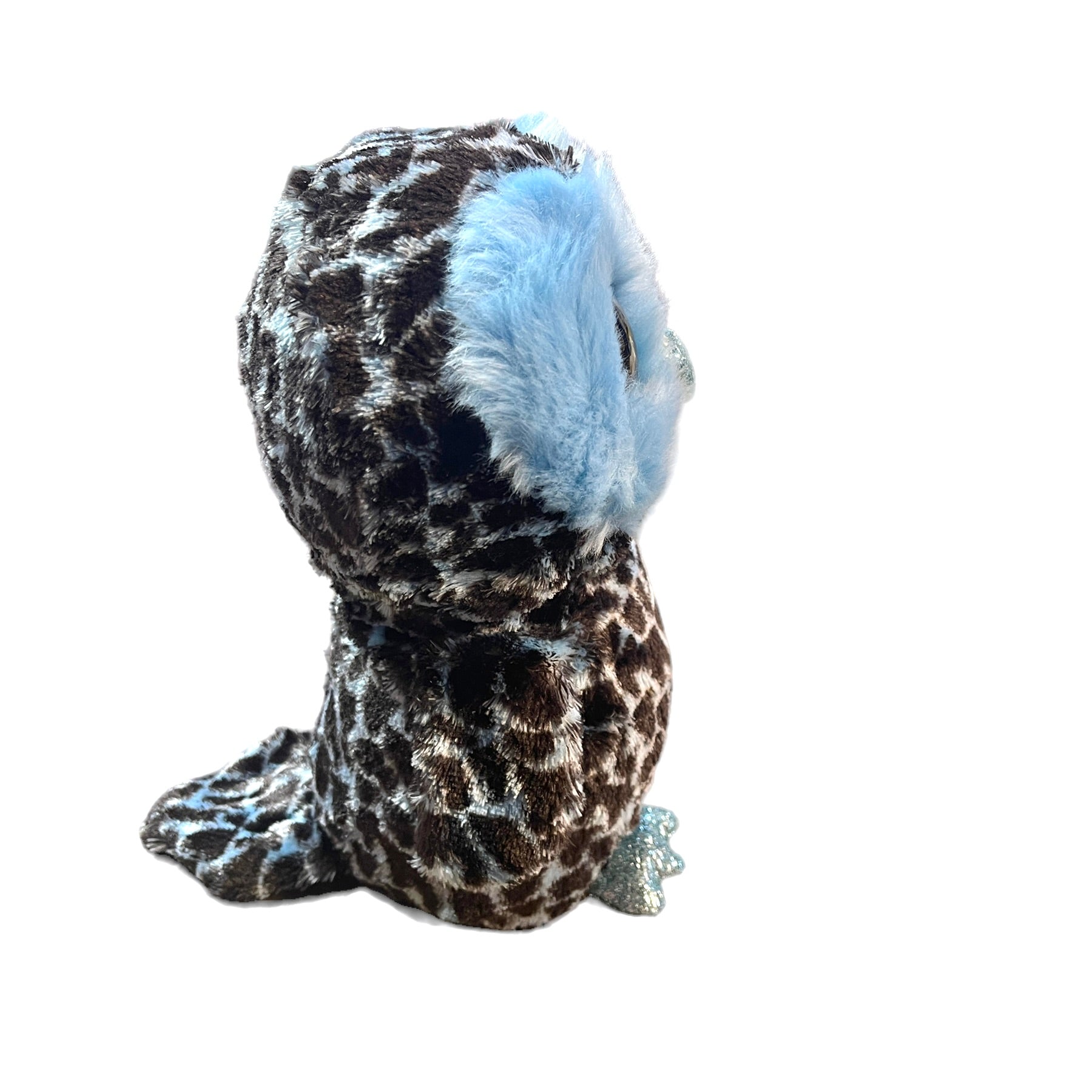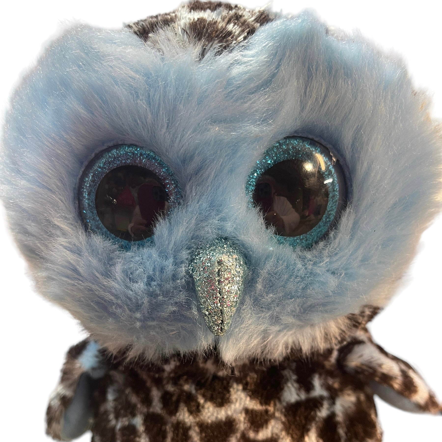 TY 9" Beanie Boo Blue Owl, Yago, has Brilliant Sparkly Blue Eyes, Beak & Feet, Fluffy & Adorable with Tags