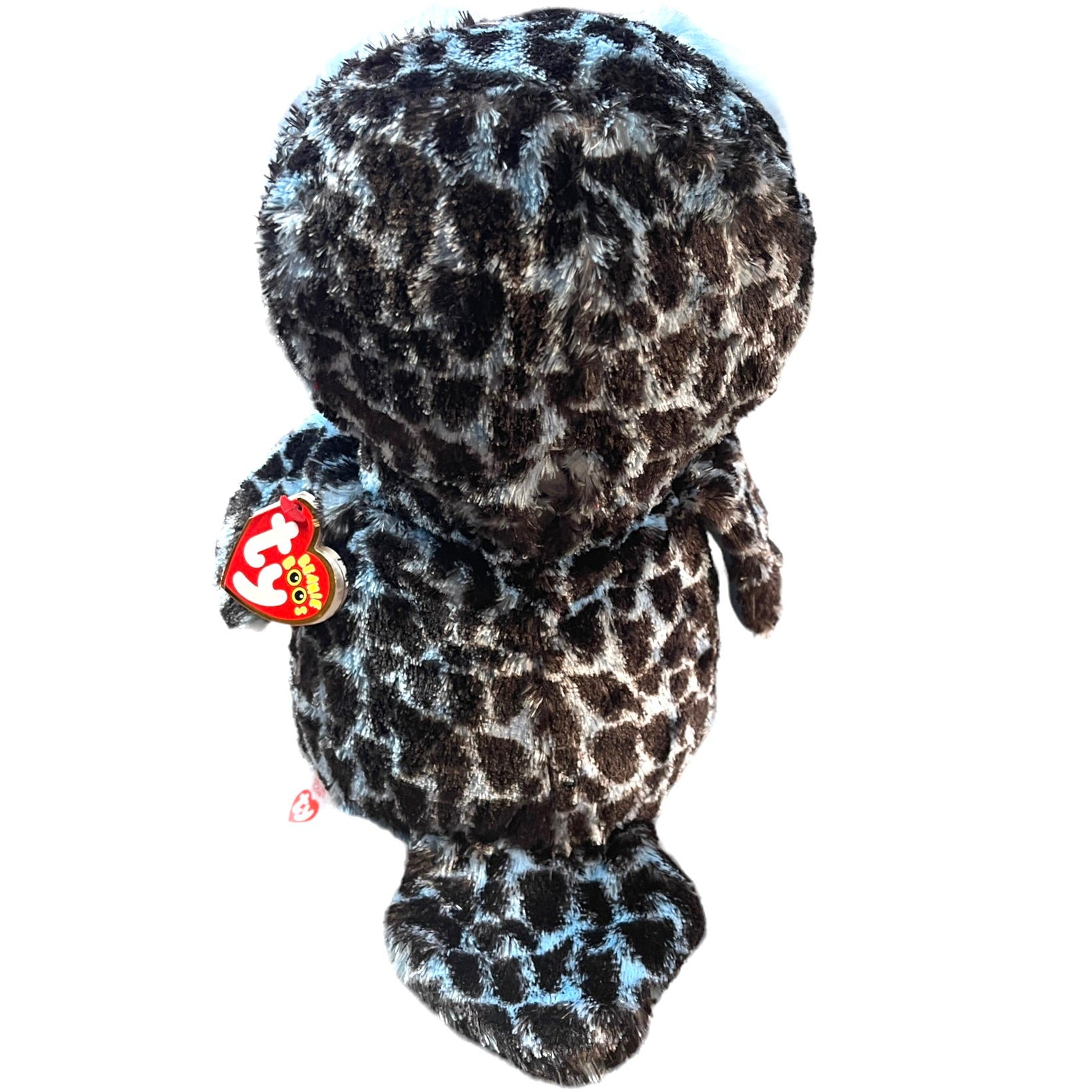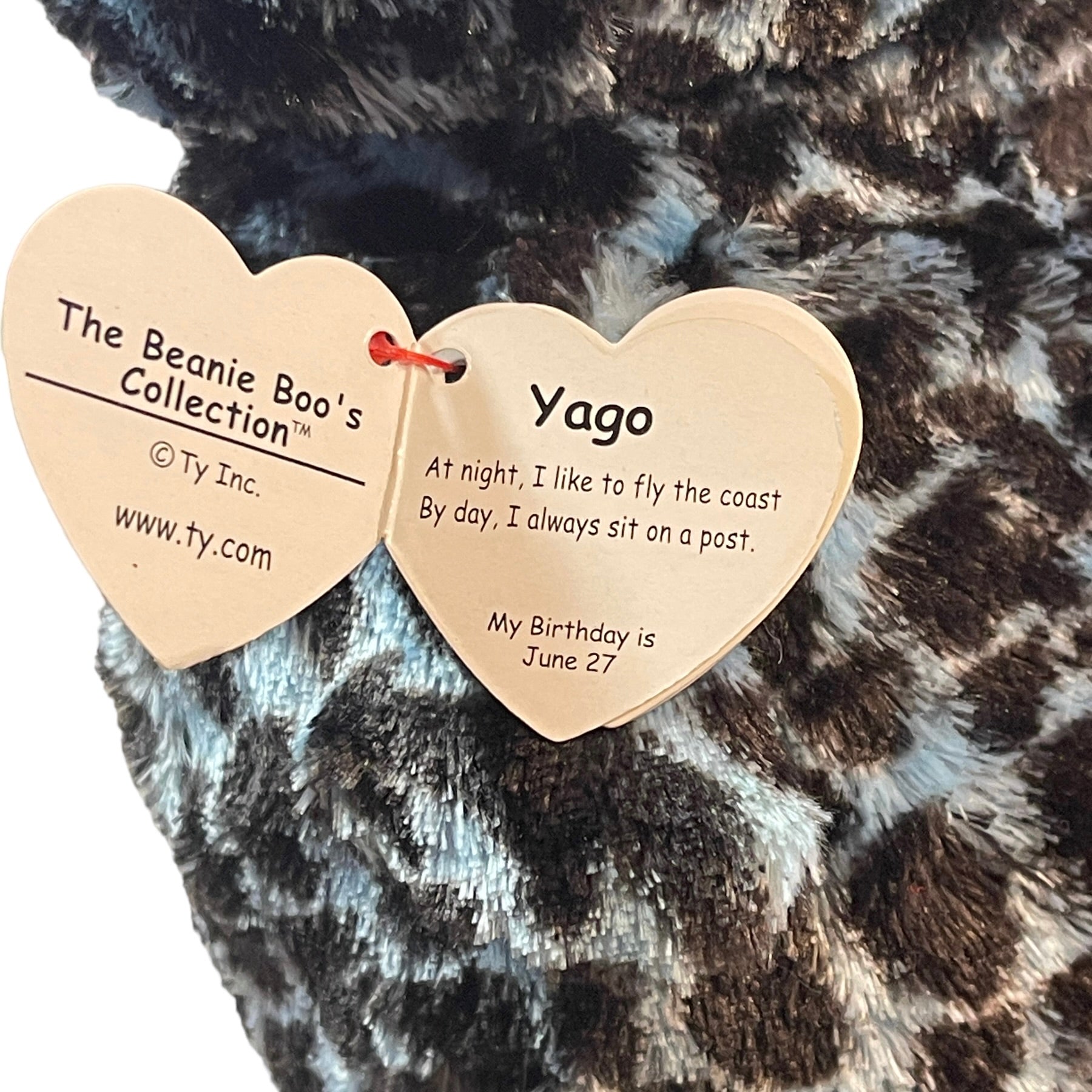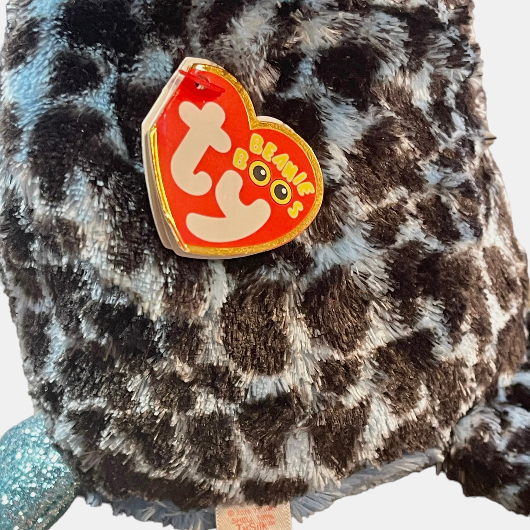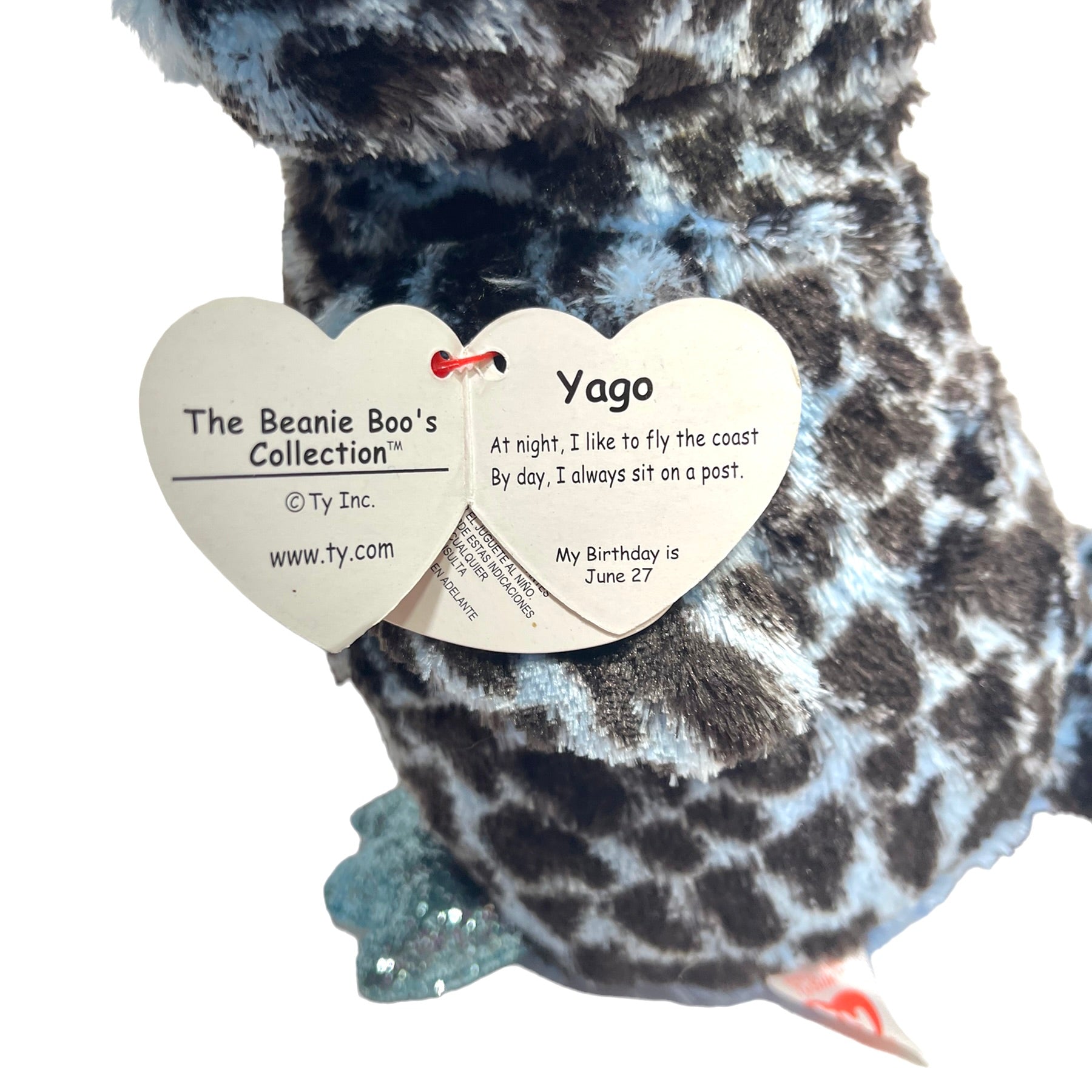 Adorable, 'Yago', is a pretty blue and black Beanie Boo Owl with lots of glitter & sparkle. Huge Shiny eyes and a furry blue ruff help make 'Yago' a very special toy. In great condition complete with hang tags.