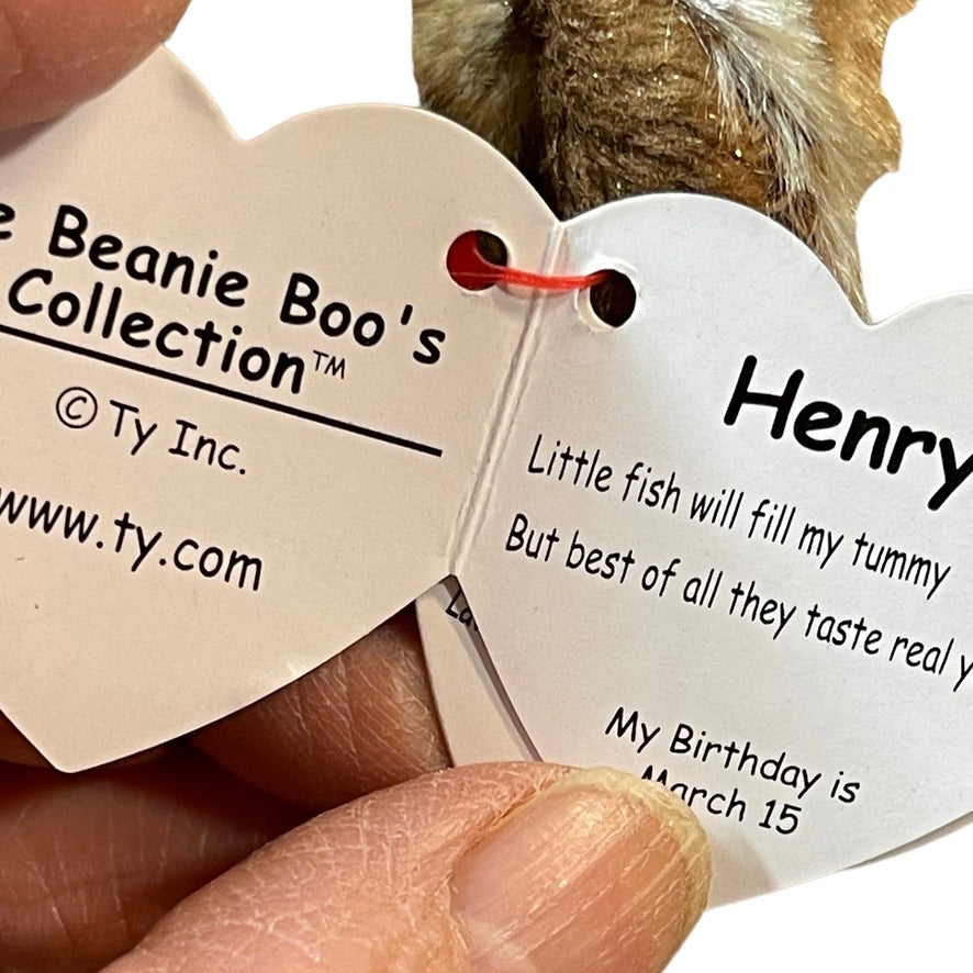 Ty Beanie Boo, 'Henry', Canadian Exclusive Bear Holding Sparkly Fish 6" Retired