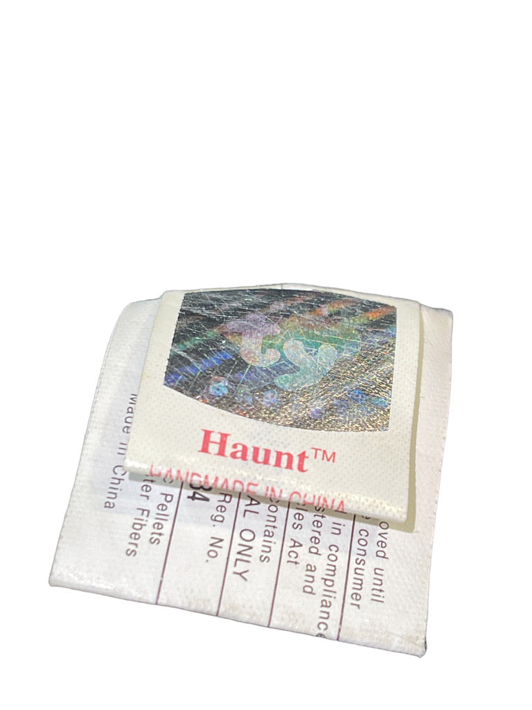 Sweet Sparkly Black Halloween Decoration, Vintage Beanie Baby, 'Haunt', in good preowned condition. Orange satin pumpkin applique on its chest, , and a pretty orange ribbon around its neck. No hang tag