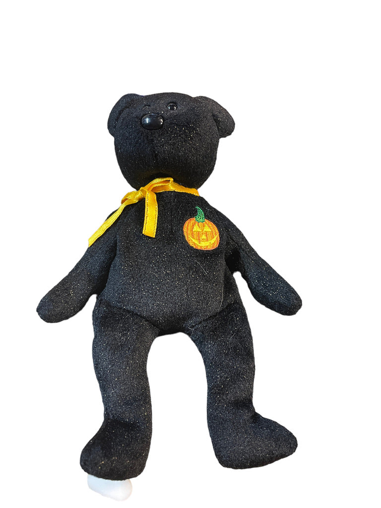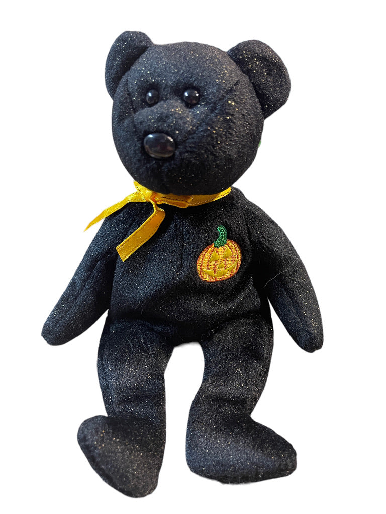Ty Vintage Beanie Baby'HAUNT' the Halloween Bear, Black Sparkles, Orange Pumpkin Applique & Satin Ribbon