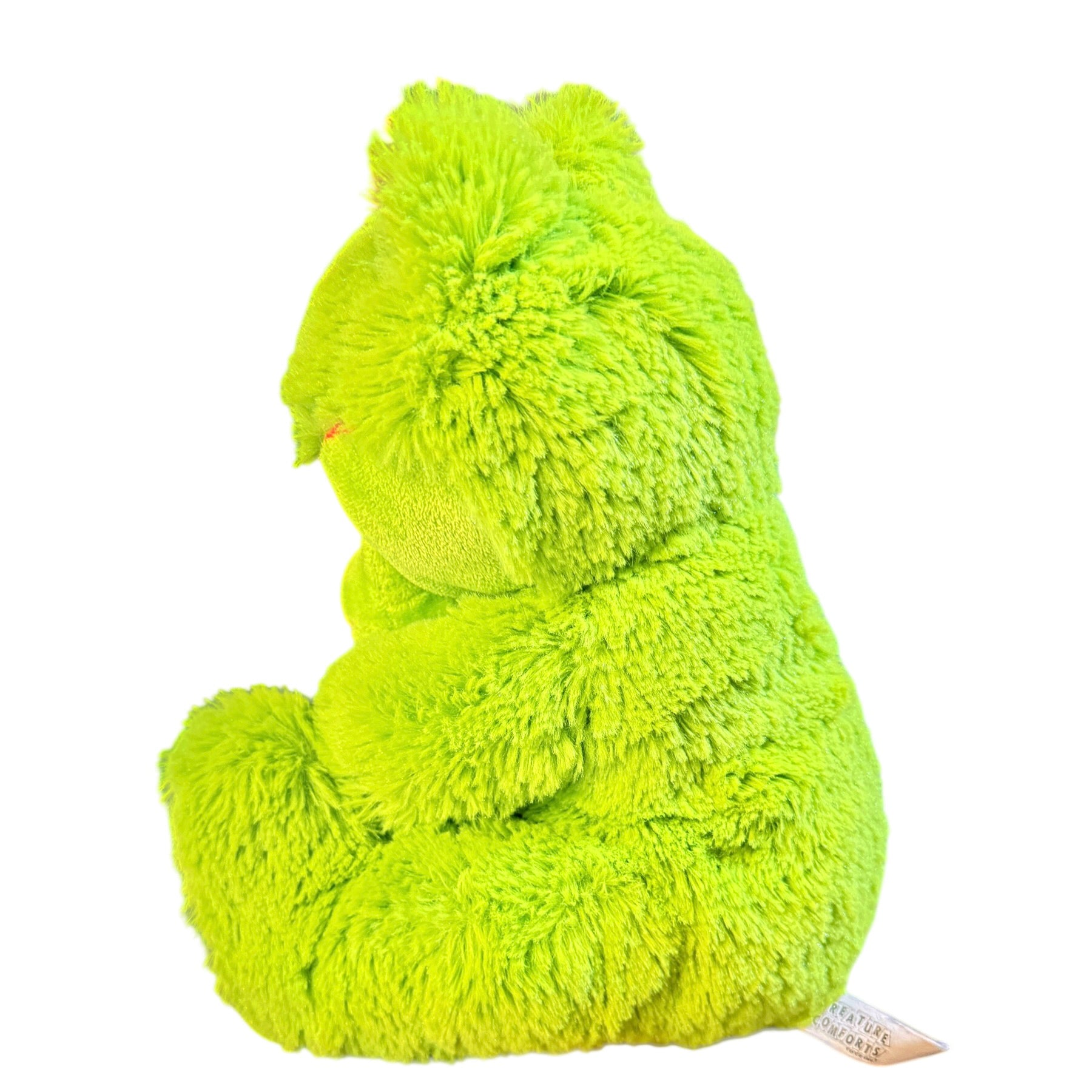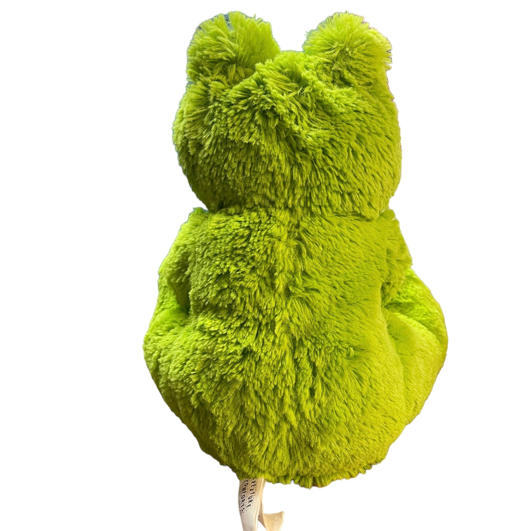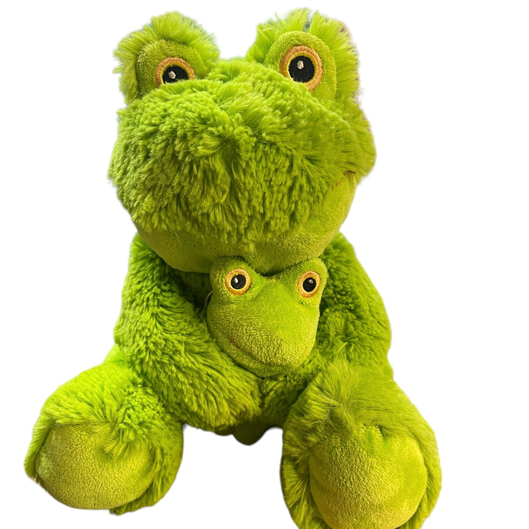 Ultra soft Creature Comforts, mama cuddling her baby frog ,shaggy lime green with embroidered eyes. Ultra soft and very sweet!