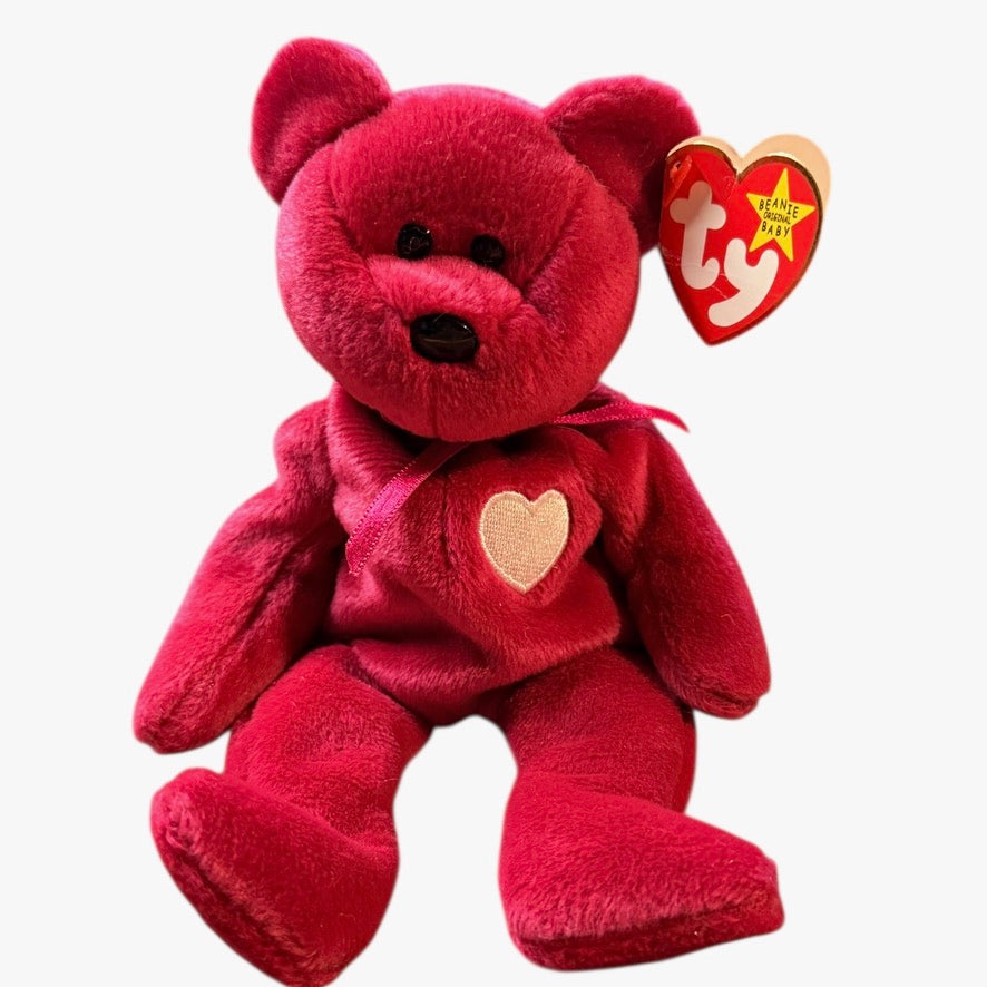 Vintage Ty, 'Valentina' Valentine bear wears her heart on her chest. This beautiful little stuffed animal toy collectible is in excellent preowned condition.