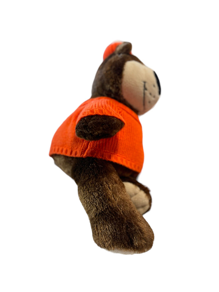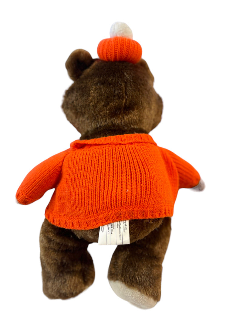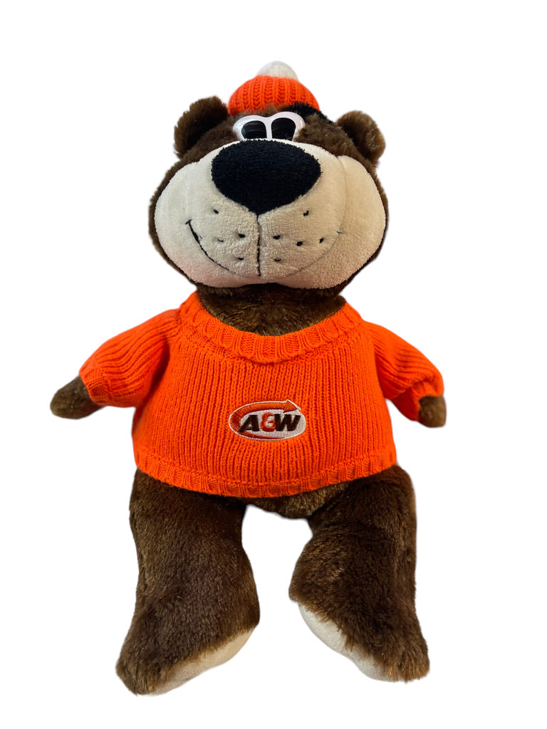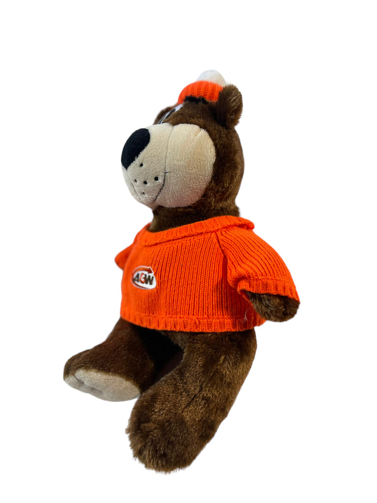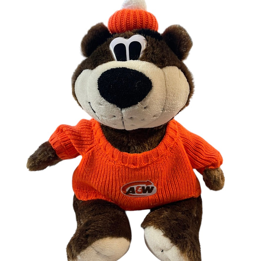 A&W Logo Root Bear Mascot Vintage 17" Stuffed Animal Plush Orange Sweater & Bobble Hat.