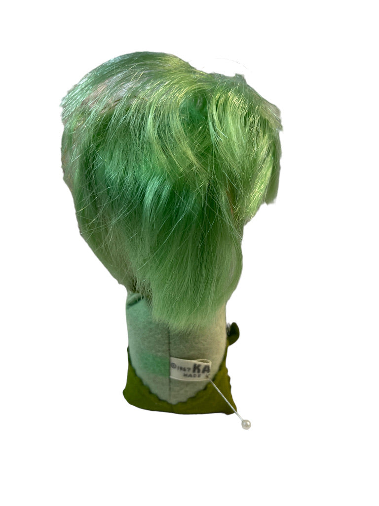 Beautiful Rare Vintage Knee Hugger from Kamar 1967, Bright GreenHair, Eyes and Scalloped Mermaid Tail. She's complete with a shiny hanging wire. A beautiful addition to a knee hugger/shelf sitter collection.